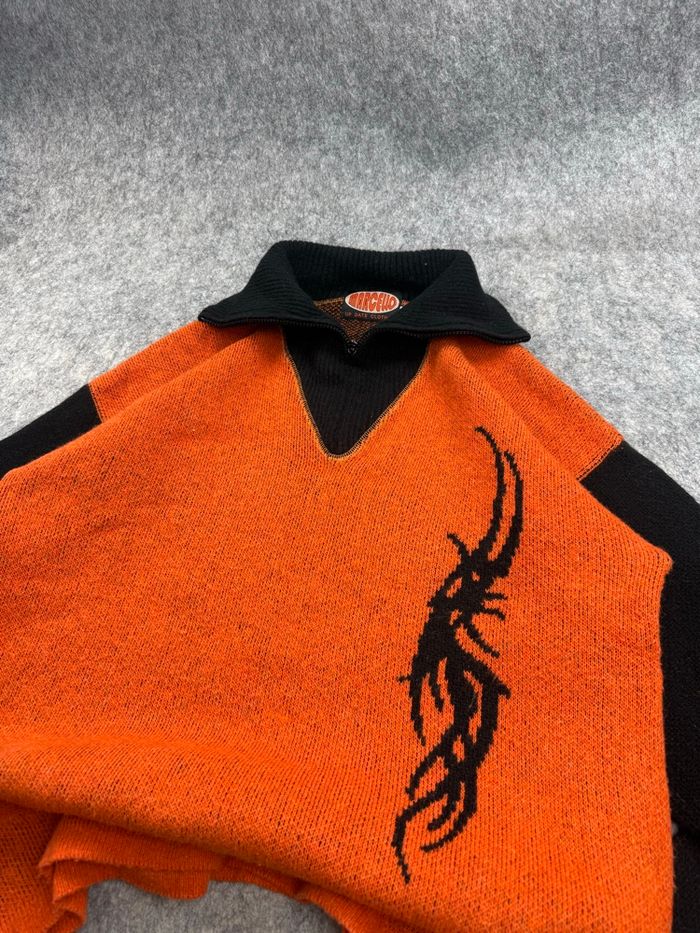 Pull Maille Laine Orange Made In France Vintage Y2K Tribal L - photo numéro 6