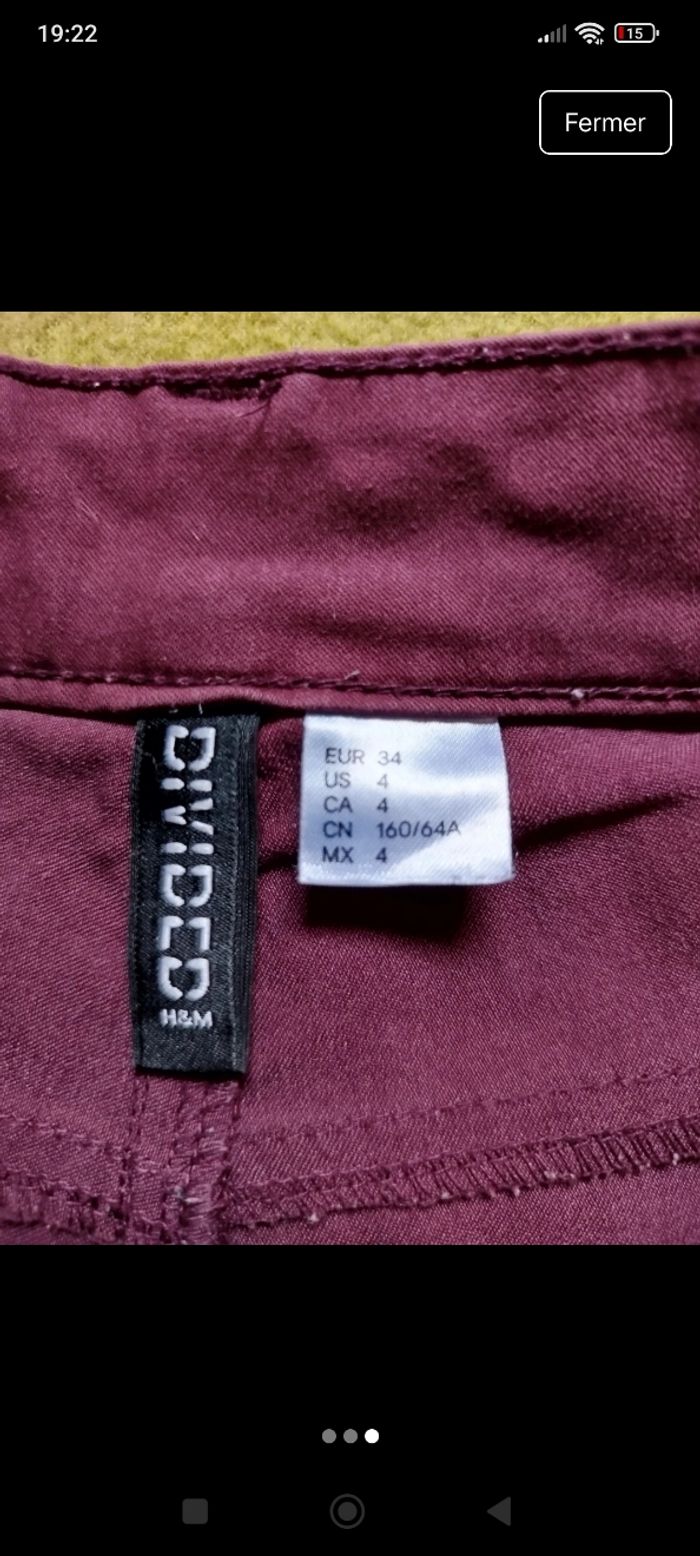 Pantalon bordeaux. Porté 1 fois, la coupe ne me convient pas. H&M, taille 34. G265