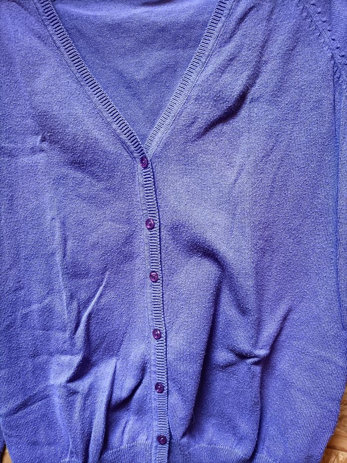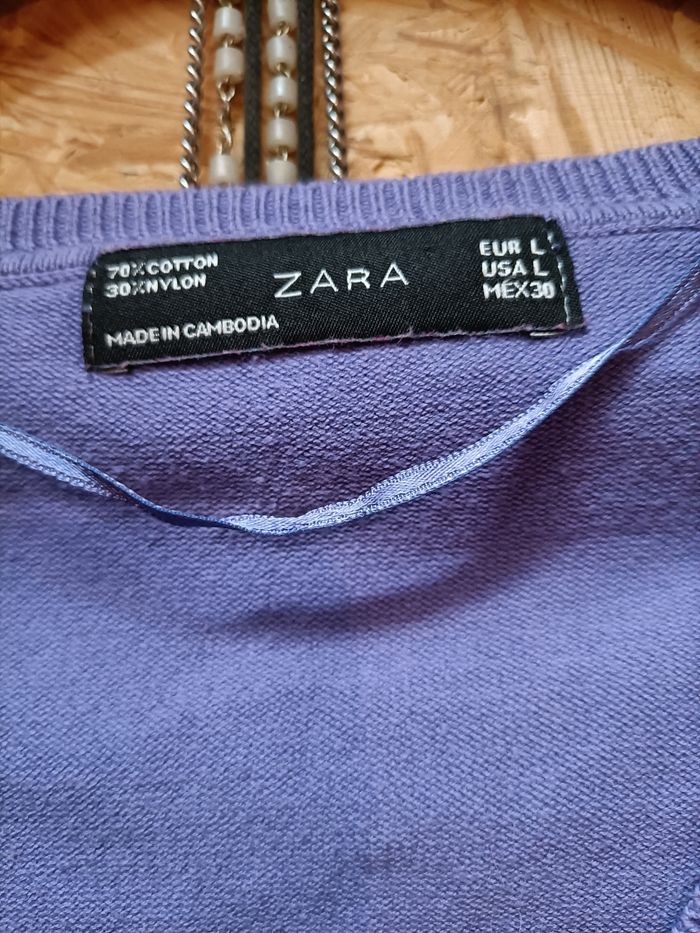 Cardigan mauve, en excellent état. Taille L. Marque Zara. Coton & Nylon.