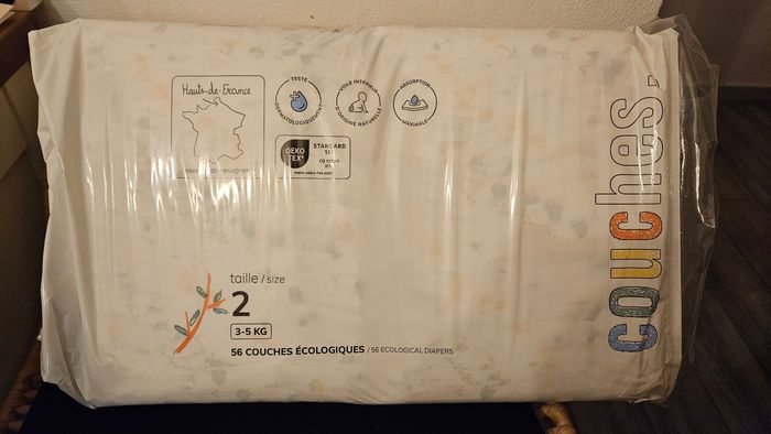 1 paquet non ouvert de couches La Marque en moins, Taille 2 (3 à 5 kg), 56 couches
