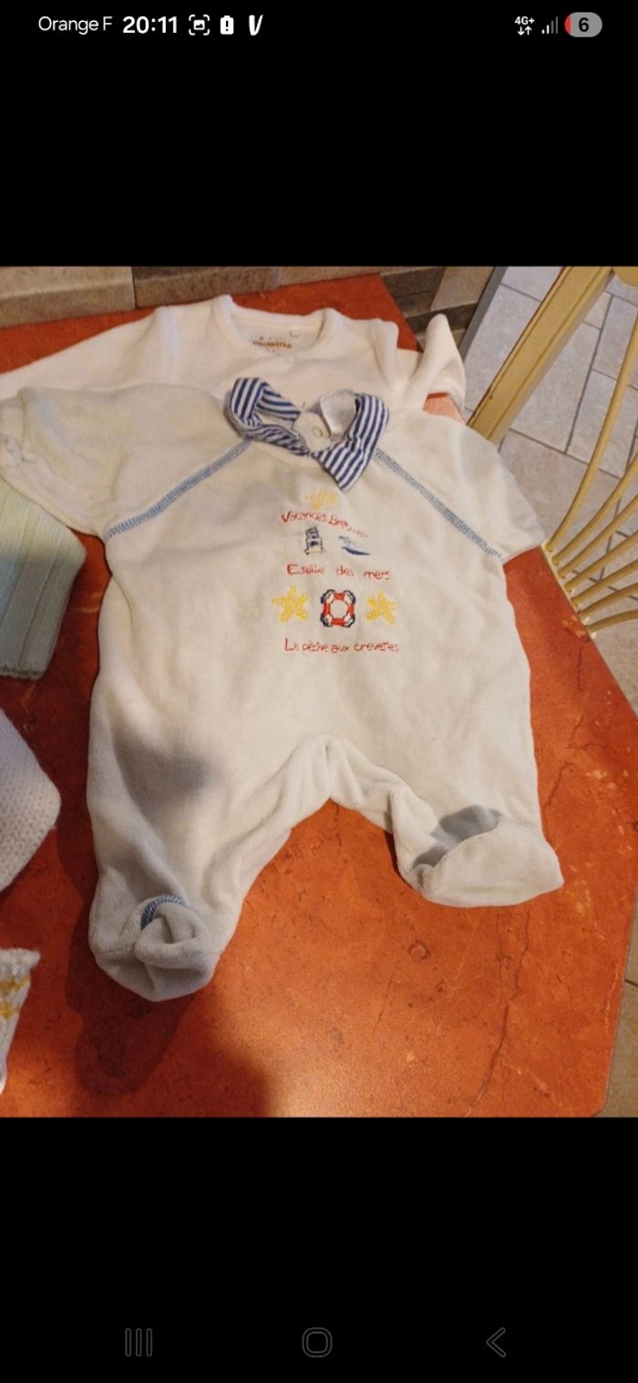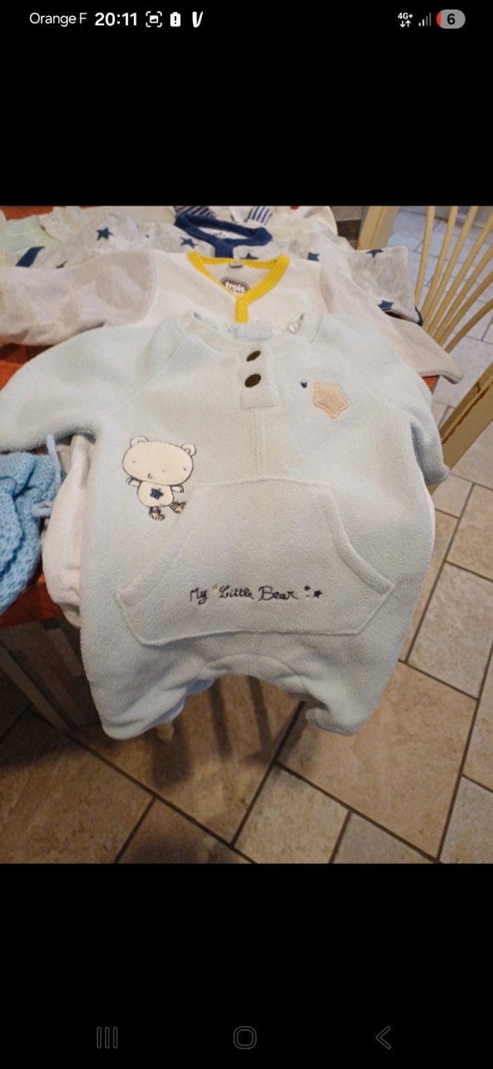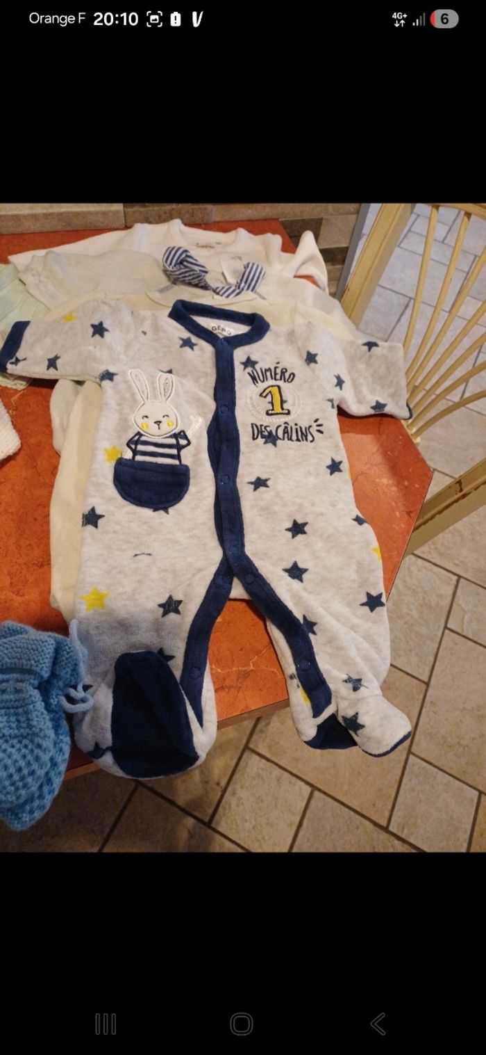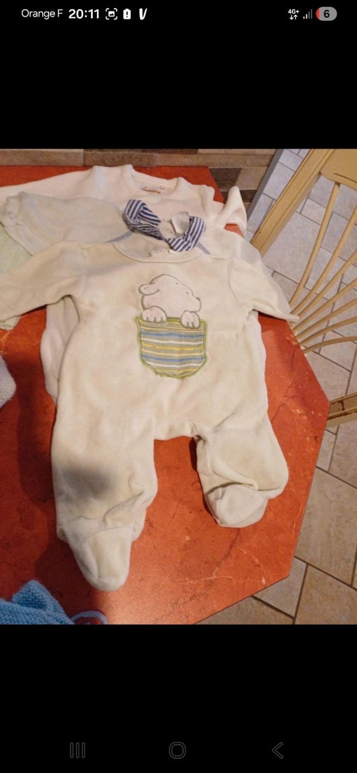 Lot comprenant 5 pyjamas en velours avec pieds 1 pyjama en velours sans pieds 1 veste en velours avec capuche neuve 2 brassières 3 bonnets de naissance en laine 4 bodies manches longues 1 ensemble moufles et chaussons en laine Vous pouvez retrouver tous ces articles à l unité dans mon dressing.