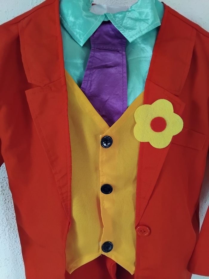 🤡 Déguisement Joker Enfant, Taille 5–6 ans. Costume Complet avec Veste, Pantalon et Cravate, idéal pour carnaval, anniversaire et fêtes déguisées. 👍 Déguisement en Très Bon Etat et propre, lavé avant mise en vente, prêt à être porté. 🤩 Bon Plan Beebs! 🤩 -30% sur cet article*! 🤩 Avec le Code CHOCOLAT30 à indiquer lors de la finalisation de votre commande! *Valable jusqu'au 05/02/2026 inclus, voir conditions détaillées sur la page d'accueil du site. 🛍 Groupez vos Achats et Cumulez les Promos! ✅️ Remise sur Lot Offerte dès le 2éme article, jusqu'à -10% ! 📦 Expédié en Points Relais. ✅️ Economisez -20% sur les Frais de Port Pour une livraison plus rapide, privilégiez Mondial Relay. Dépôt des colis au point relais du lundi au samedi. Rèf. Annonce : JOK56-B037