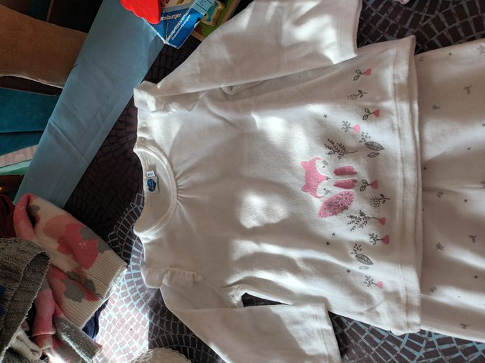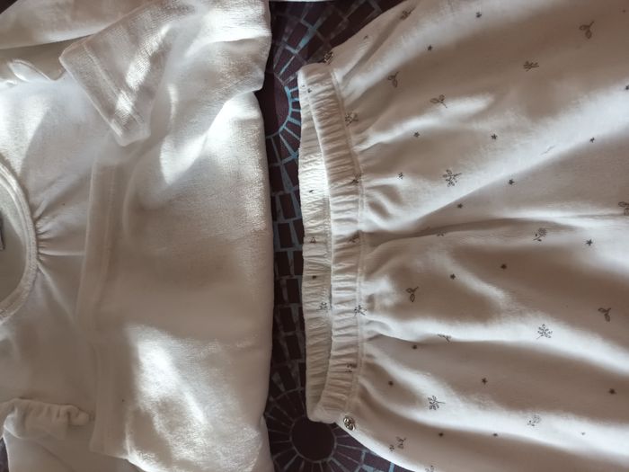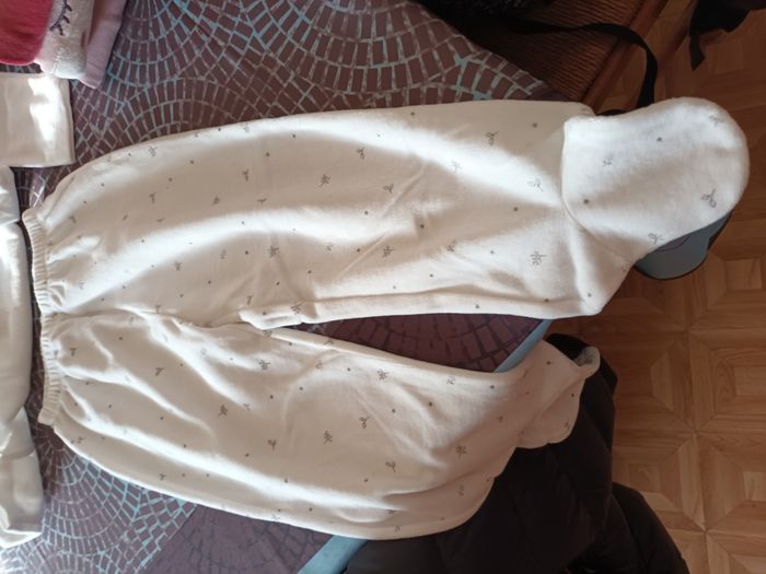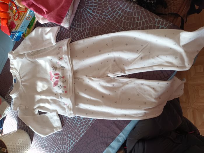pyjama fille 3 ans marque mots d enfants couleur blanc motifs pieds au pantalon pression pour attacher le pantalon au haut si on le souhaite tres bon etat