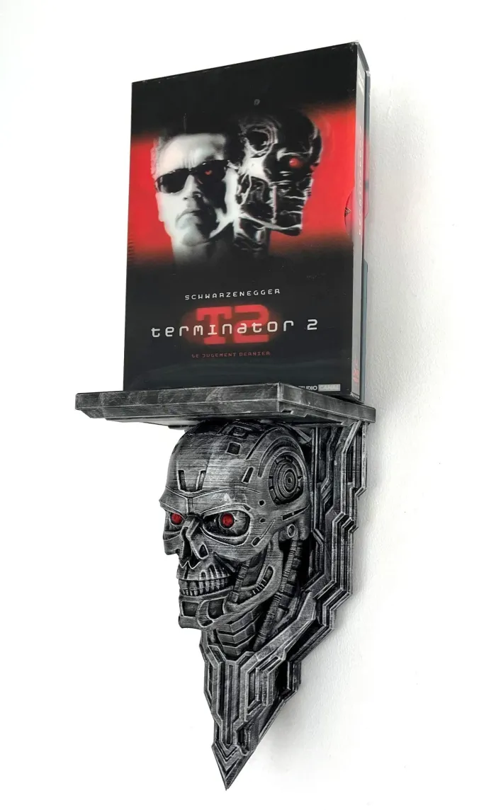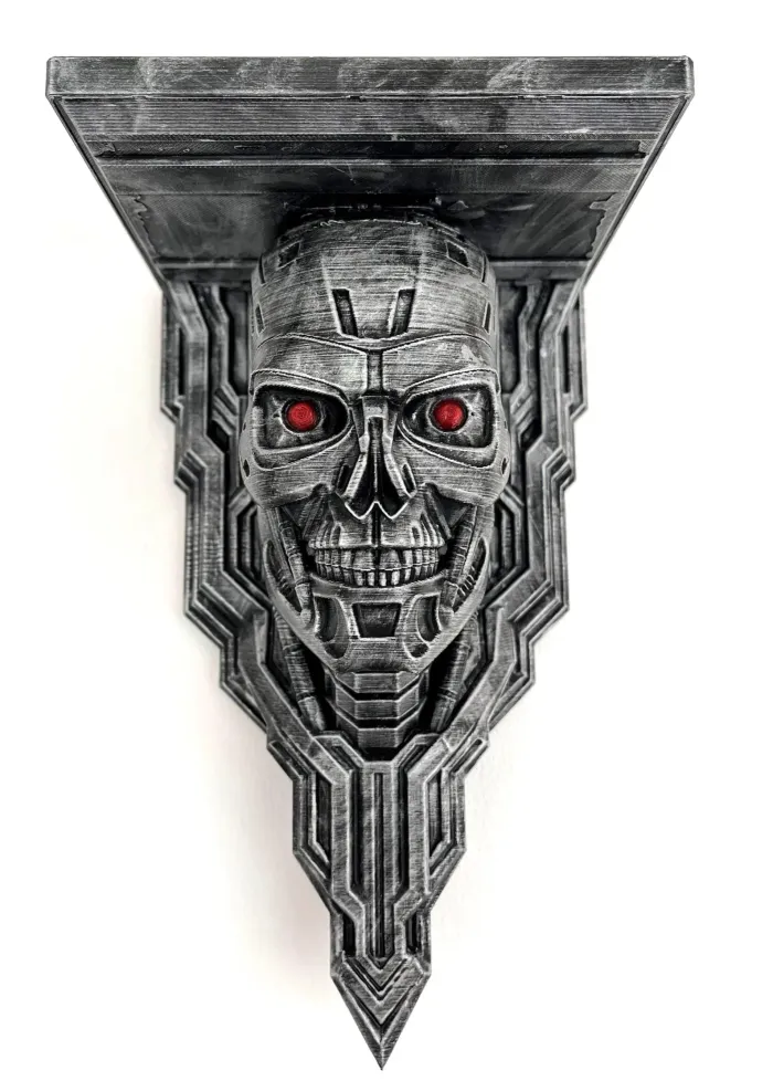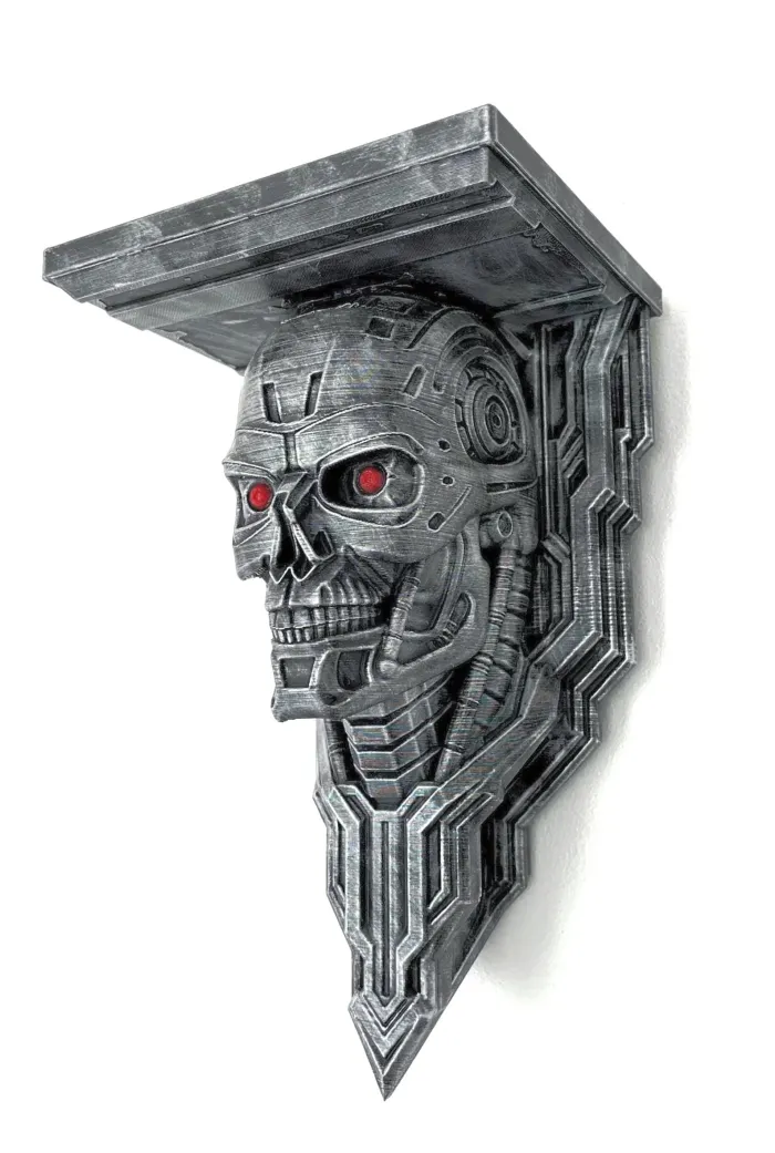 Support mural Cyborg | Déco murale crâne cyberpunk | Étagère futuriste pour chambre geek | Cadeau science-fiction unique