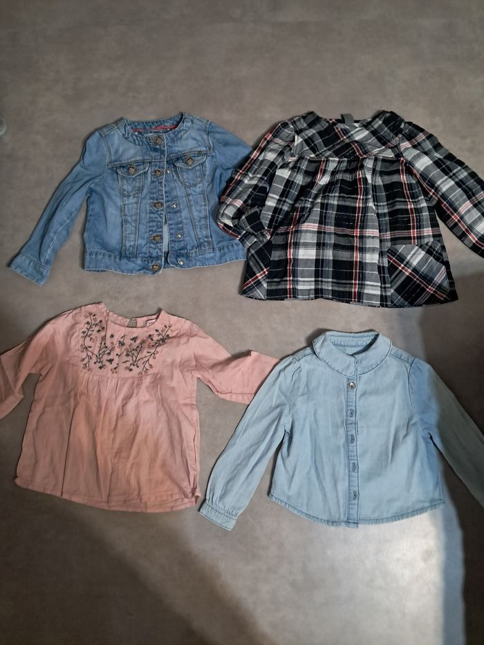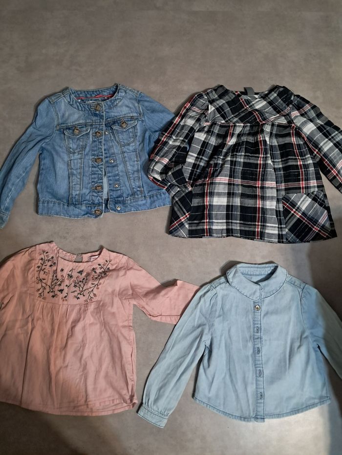 Lot 4 pieces fille 1 veste en jean en très bon état 1 chemise en jean neuve 2 blouse manches longues en très bon état Taille 3 ans