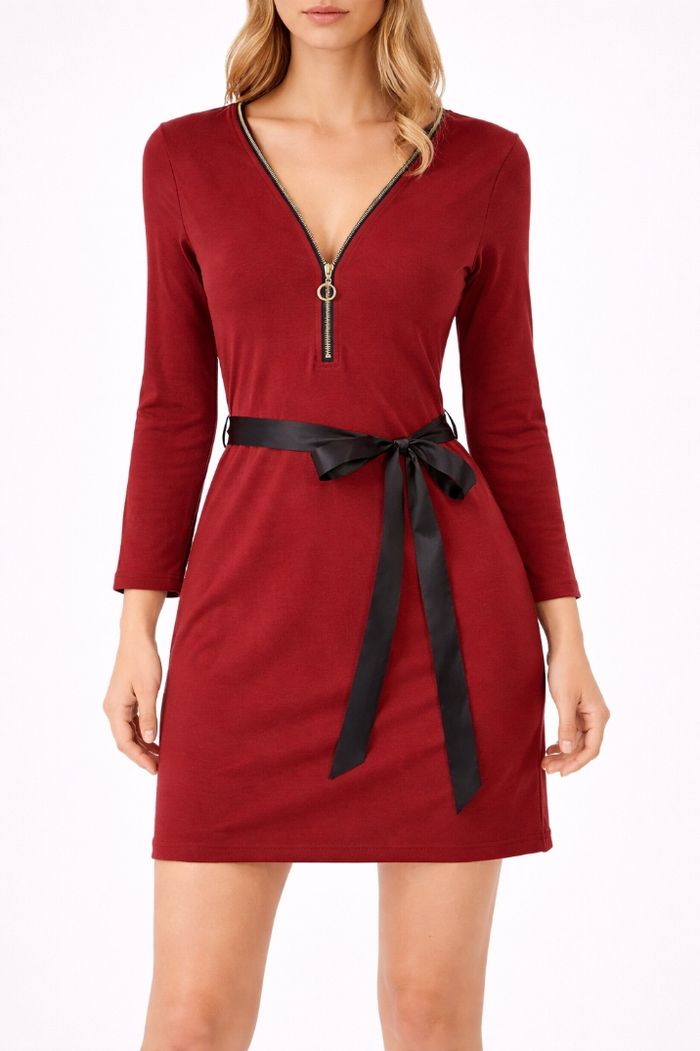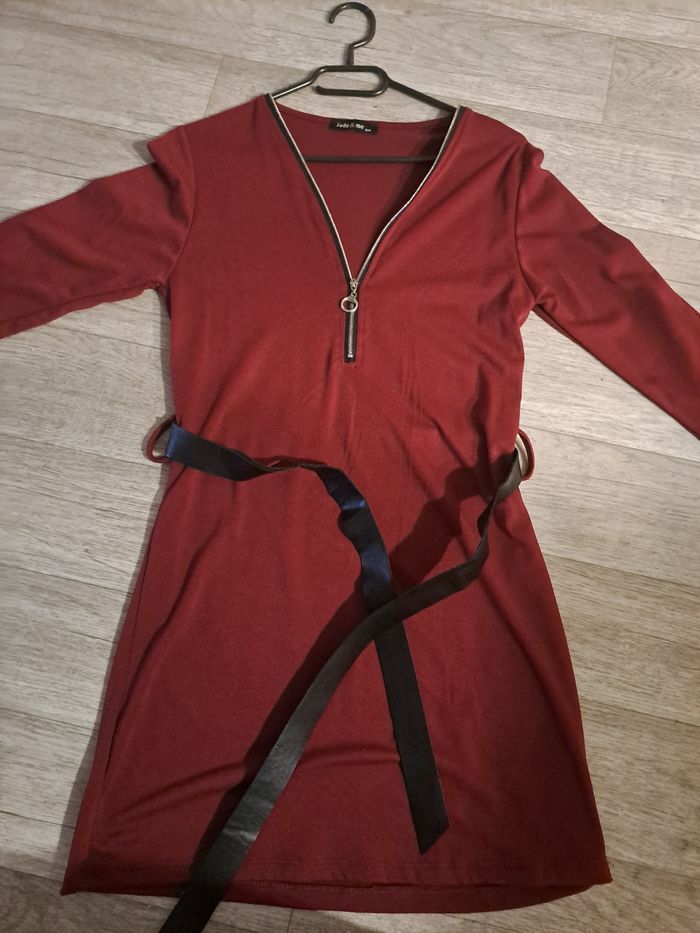 Jolie robe bordeaux avec ceinture noire En tres bon etat Taille S/M