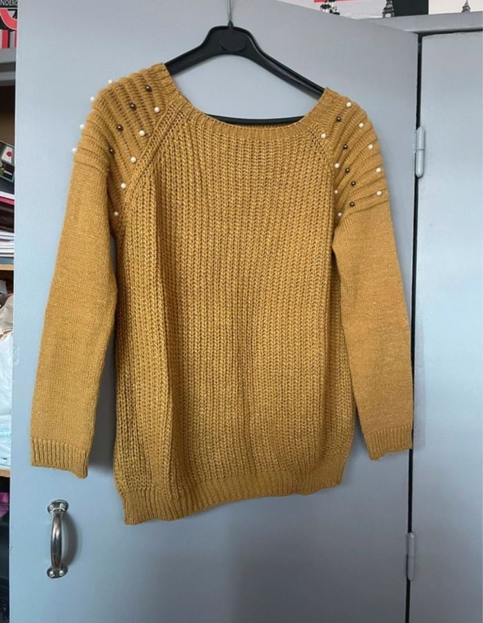 Pull jaune moutarde Avec perle sur les épaules Taille unique