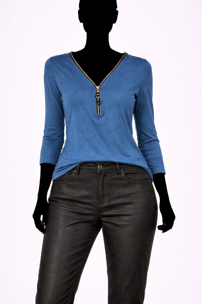 Pantalon gris effet simili gris et pull bleu Taille M En bon etat