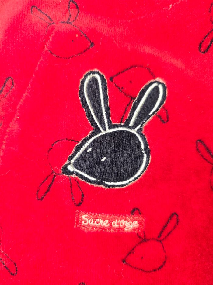 Pyjama rouge avec motif lapin Marque : Sucre d'orge Taille : 1 mois Elastiqué aux chevilles pour un bon maintien Neuf #cocxinellegarcon1mois #cocxinellefille1mois #cocxinellemixte1mois