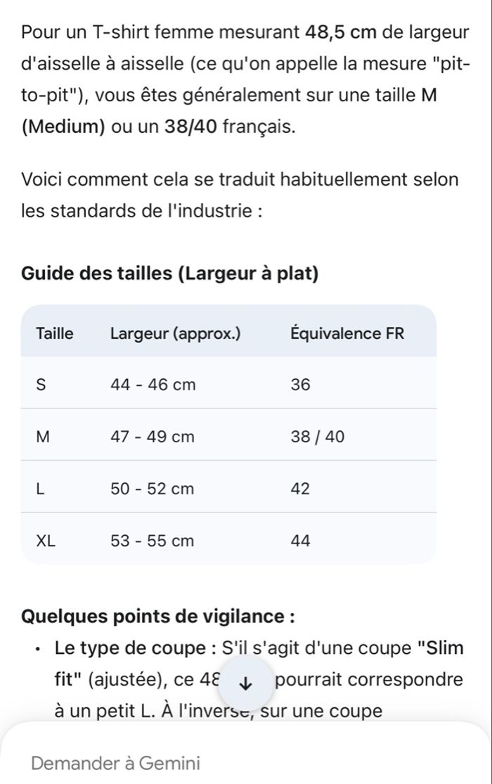 🚨Merci de bien lire l’annonce. Tee-shirt »Gémo »bleu ciel,en très bon état. Il est noté sur l’étiquette taille M mais selon deux guides de tailles de l’IA,correspondrait à du M/L. Mesure d’aisselle à aisselle:48,5cm=97cm de tour de poitrine. 🎯Guides de tailles disponibles en dernières photos. 📌Il faut savoir que souvent les marques peuvent avoir un guide de taille qui diffère des unes aux autres donc Merci de vérifier les mesures de vos vêtements avec celui-ci car si ça ne convient pas je n’en serais pas responsable. Si vous avez le moindre doute, n’hésitez pas avant achat de me demander les mesures ou renseignements afin d’éviter tous désagréments. PS:Tous les vêtements sont lavés et repassés avant chaque envoi. 🔥🔥Réduction sur les lots activée🔥🔥 -5% de remise pour 2 articles. -10% de remise pour 3 articles. -20% de remise pour 5 articles.