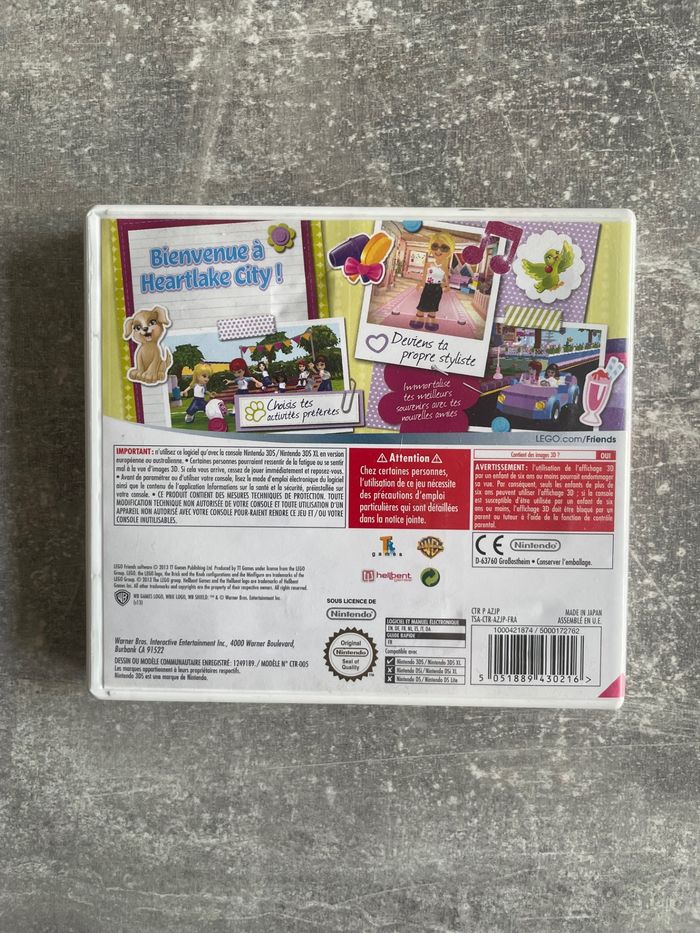 Jeu pour Nintendo 3DS, Lego friends en français. Bon état. Complet avec sa boite et son guide rapide ( manuel non présent car manuel électronique pour ce jeu, voir dos de la boite ). Langues disponibles ( Logiciel et manuel électronique ) : Français, anglais, allemand, espagnol, danois, hollandais et italien. Langue disponible pour le guide rapide : Français. Compatible avec : New Nintendo 3DS, New Nintendo 3DS XL, Nintendo 3DS, 3DS XL, 2DS. Non compatible avec : Nintendo DS, DS lite, DSi, DSi XL. Envoi rapide et soigné. Consultez mes autres articles pour de moindres frais de port.
