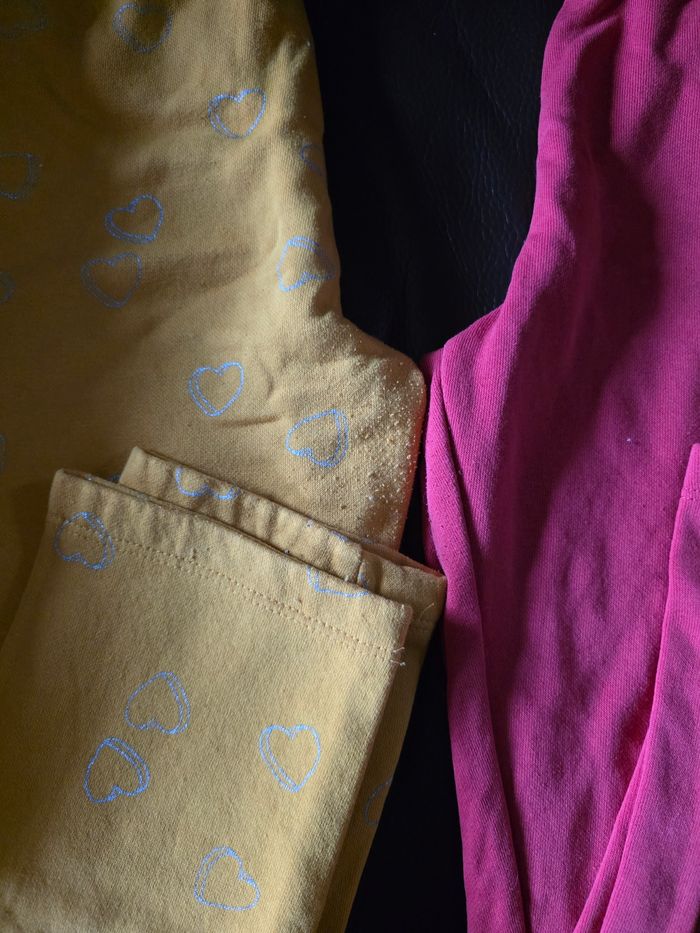 Lot vetements 10 ans Le pantalon jaune avec des cœurs a un peu peluche.