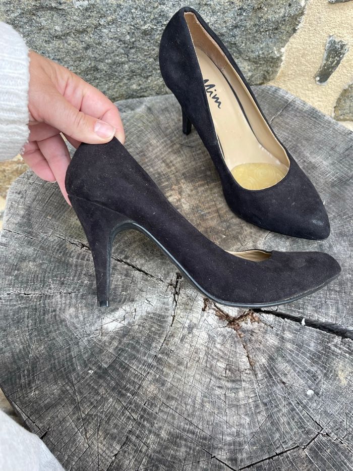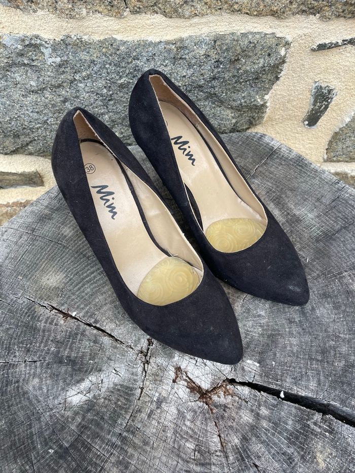Escarpins à talon noir en matière suede Taille 38 Très bonne état Mim Coussinet confort à l’intérieur