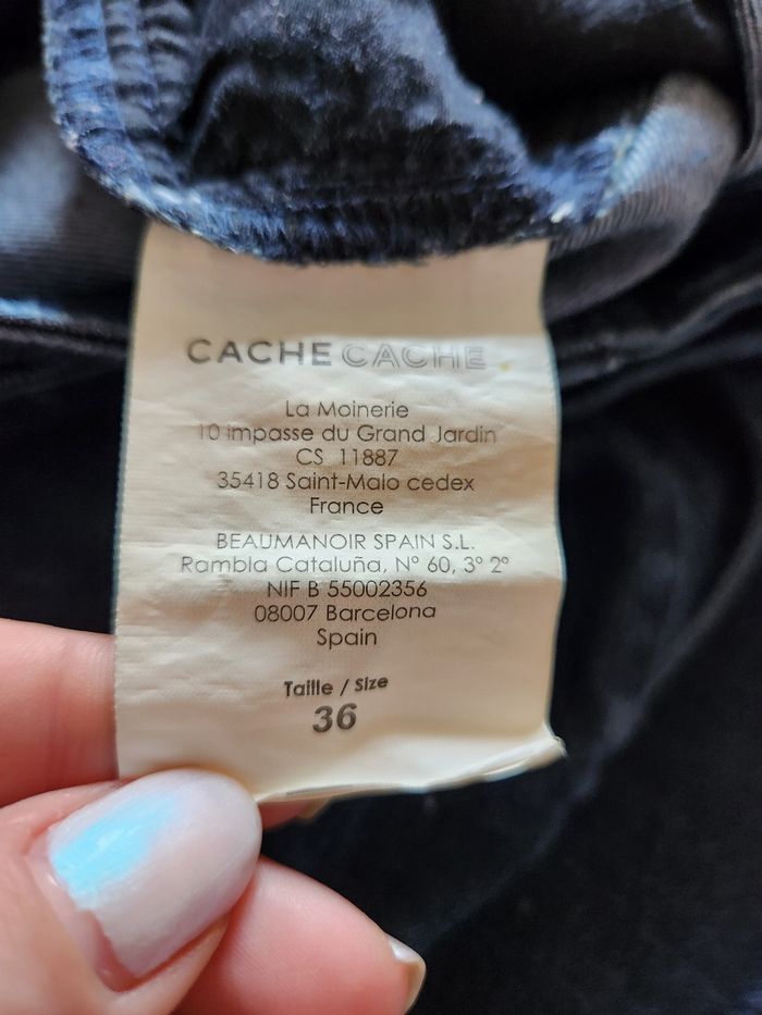 Jupe en jean Cache Cache, taille 36, coupe courte et féminine. Boutonnage sur le devant avec ceinture à boucle. Détails : - Marque : Cache Cache - Taille : 36 - Longueur : 45 cm - Jupe en jean boutonnée - Ceinture assortie incluse - Coloris : denim bleu foncé - État : très bon état Idéale avec un t-shirt, une blouse ou un pull rentré. Maison non-fumeur, envoi rapide et soigné. #CacheCache #JupeJean #JupeBoutonnee #Taille36 #ModeFemme
