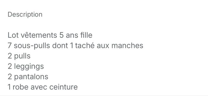Lot vêtements fille 5 ans Description en photo