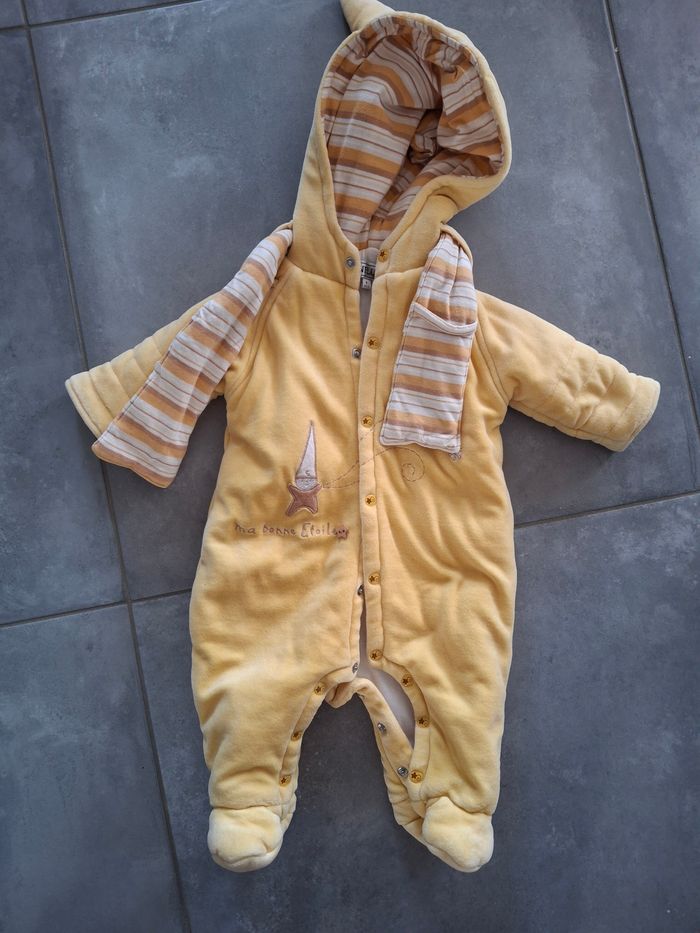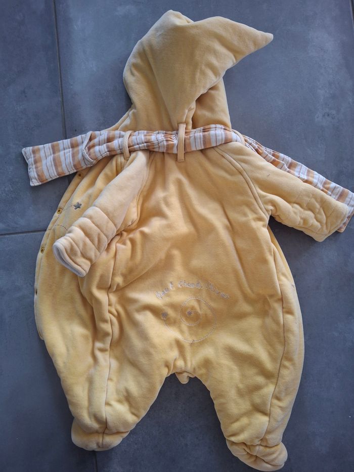 Combinaison jaune taille 6 mois, très chaude et douillette. Un peu taché à l'intérieur (voir photo).