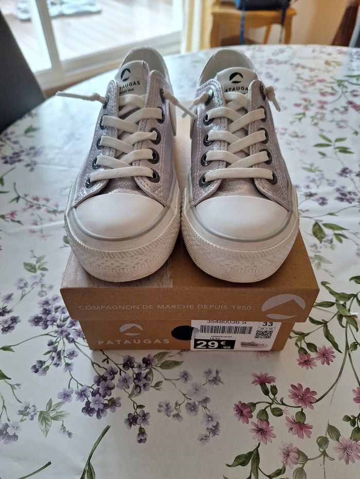 Très belle paire de Pataugas couleur lilas pailletée. Très bon état car portées 2 fois. Easy Laces