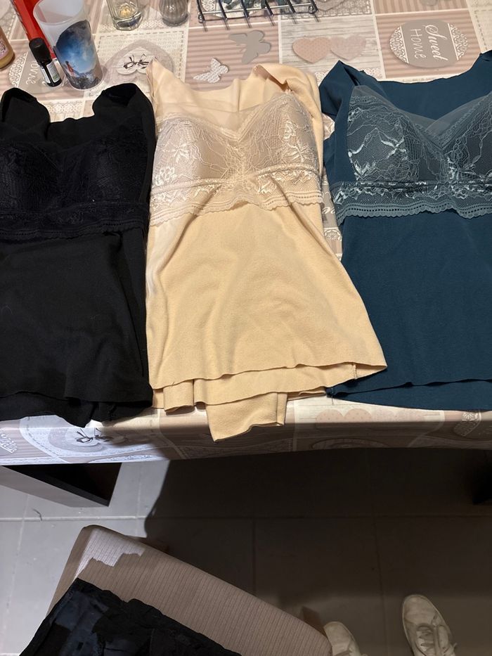 Bonjour, je vend ce lot de trois teeshirt à manches longues femme , ils sont identiques sauf la couleur, ils tiennent chaud