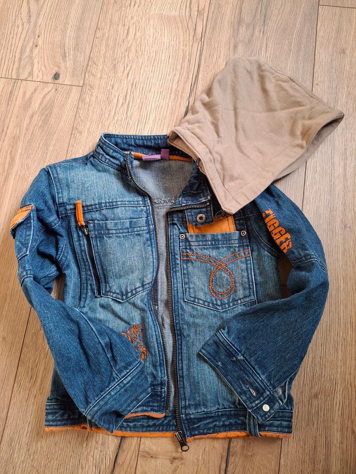 Vends veste en jean pour enfant, taille 6 ans et en très bon état. Possibilité d'ajouter une capuche (voir dernière photo), système d'attache de la capuche avec des boutons.