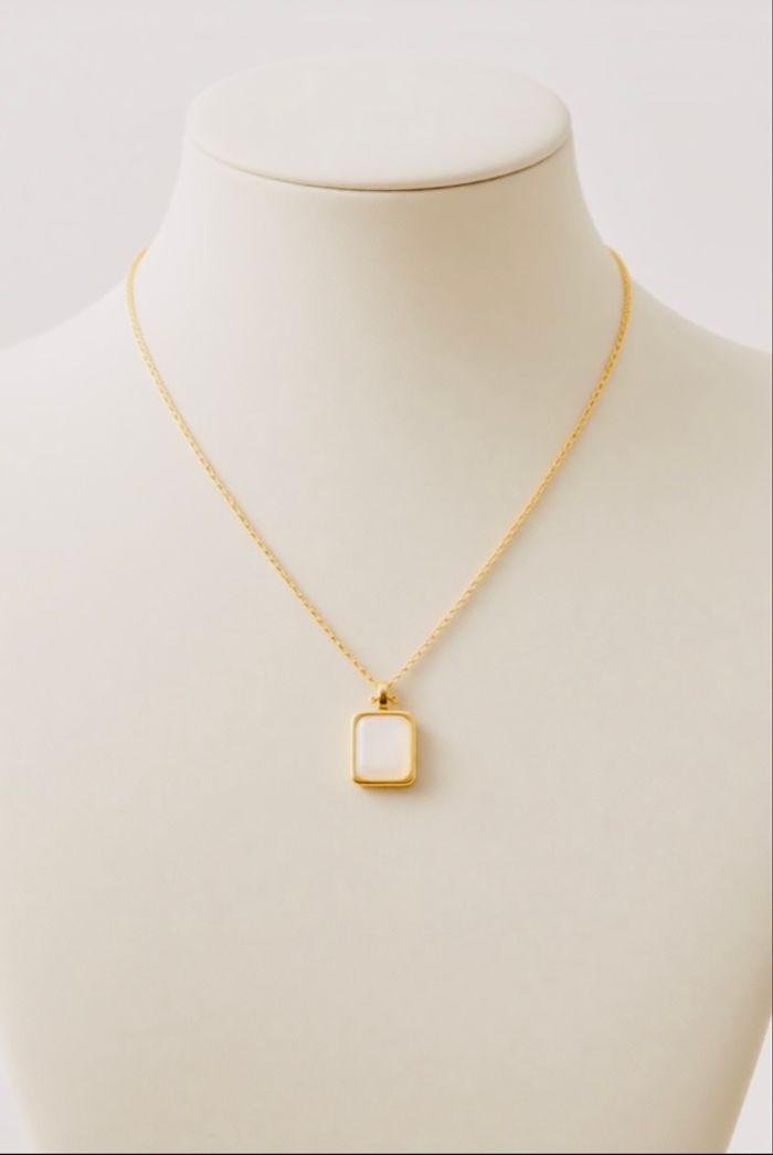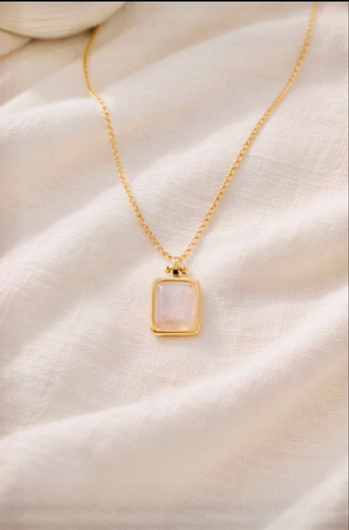 Collier plaqué Or avec pierre précieuse rose, Neuve