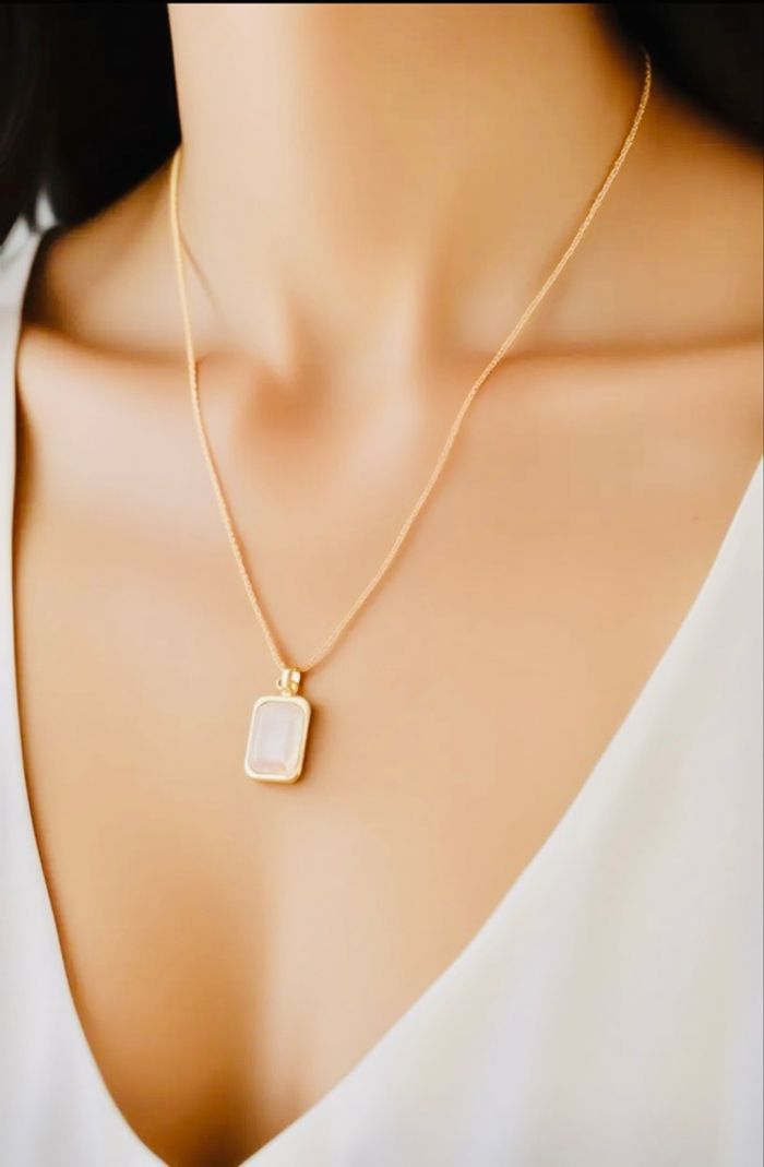 Collier plaqué Or avec pierre précieuse rose, Neuve - photo numéro 3