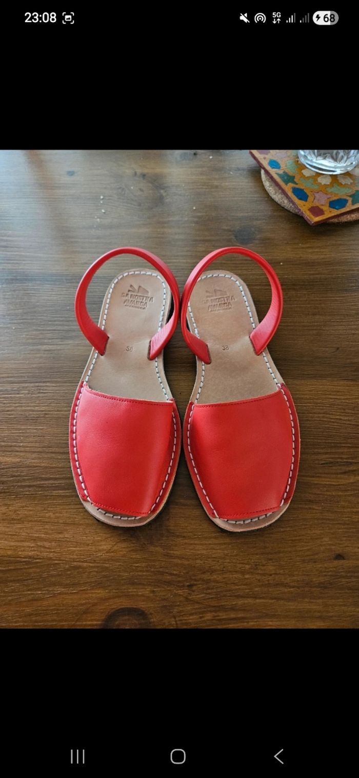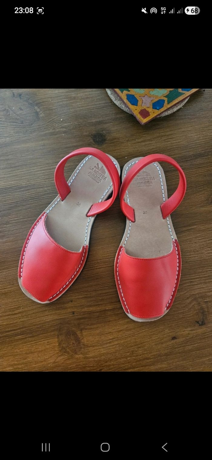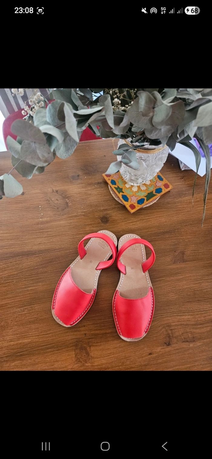Bonjour Je vends cette paire de sandale minorcaise venant de l'île jamais utilisées juste essayées. Neuves