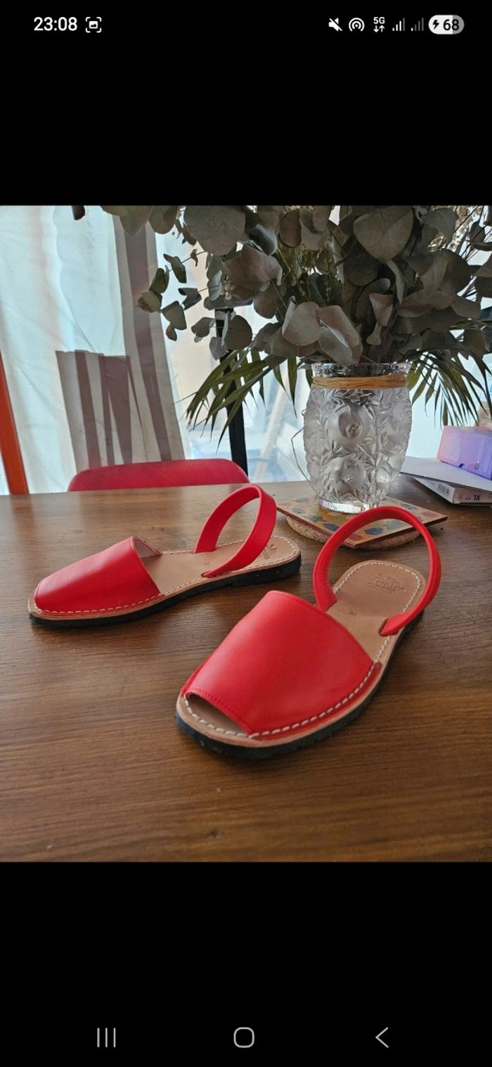 Sandales rouges cuir minorcaise - photo numéro 2