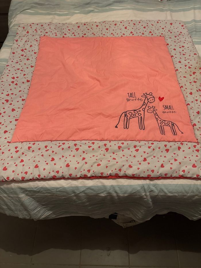 Bonjour, je vend ce tapis de sol qui a déjà fait un peu de seconde main, il est assez grand ( je ne connais pas les dimensions exacte) Il est épais mais pas rembourrés