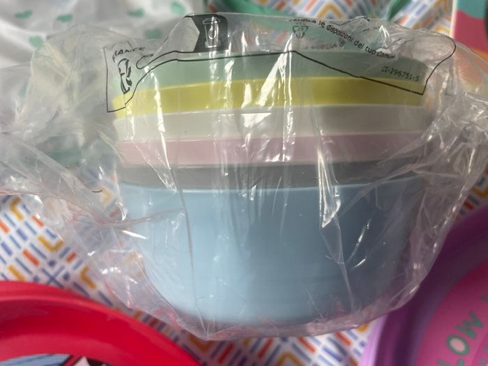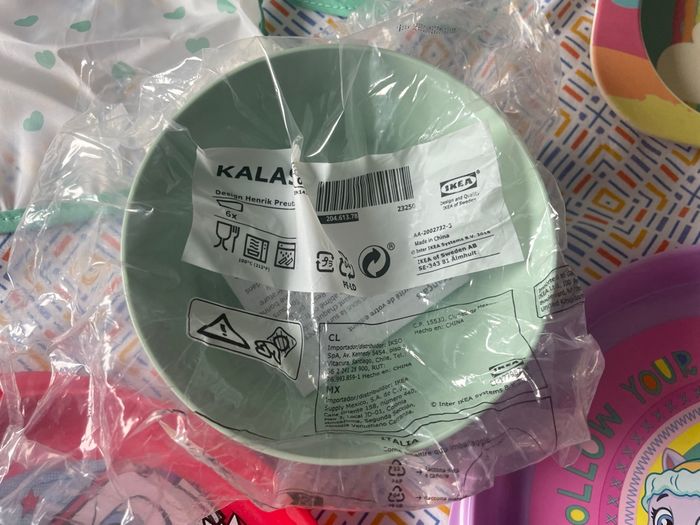 6 bols enfants Ikea Kalas Neufs. Sous emballage + bavoir imperméable + ensemble d’assiette, bols et verre en bambou