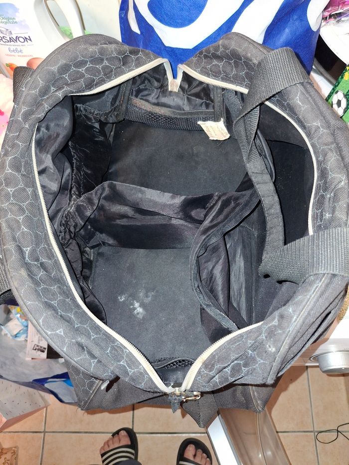 Bon état juste un peu usée sur les coins plusieurs poche rangement et tapis pour changer rangement sucette