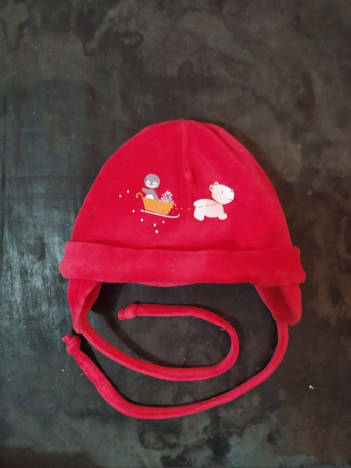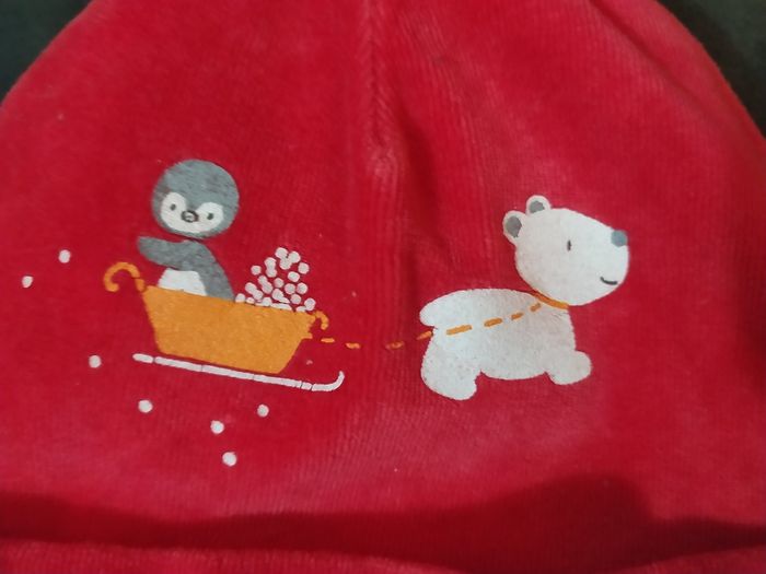 ⚠️ envoi à partir de 5€ d'achat⚠️ Bonnet rouge avec motif pingouin et ourson avec traîneau taille: 45, 3 mois en polaire Couvrant tête et oreilles, avec 2 cordons Bon état OFFERT pour 5€ d'achat en manteau/vêtements bébé 😃 Me contacter quand vous avez fait votre lot, pour déduire le prix du bonnet. ⚠️ envoi à partir de 5€ d'achat⚠️