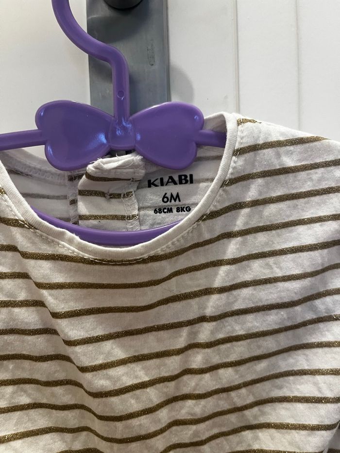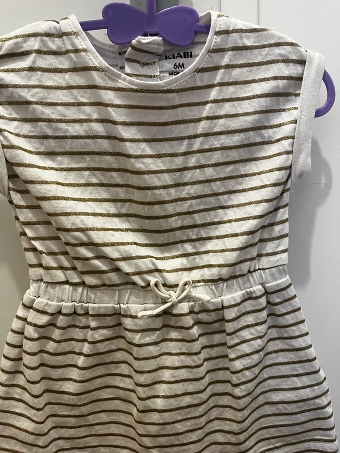 Robe jean Kiabi - 6 mois Robe blanche à rayures dorées Kiabi - 6 mois N’hésitez pas à faire des lots sur mon dressing à petits prix ✨