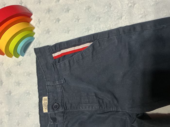 pantalon chino marine bandes rouge et blanc sur les poches XXS tape à l'oeil