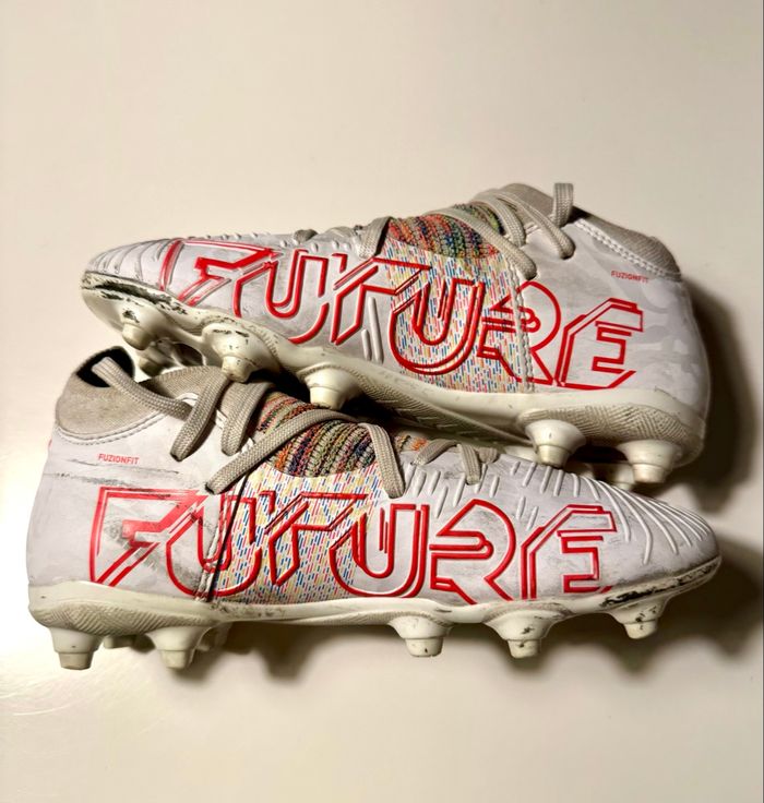 Chaussures de foot crampons Puma Future blanche Pointure : 33 État satisfaisant elles sont en bon état général