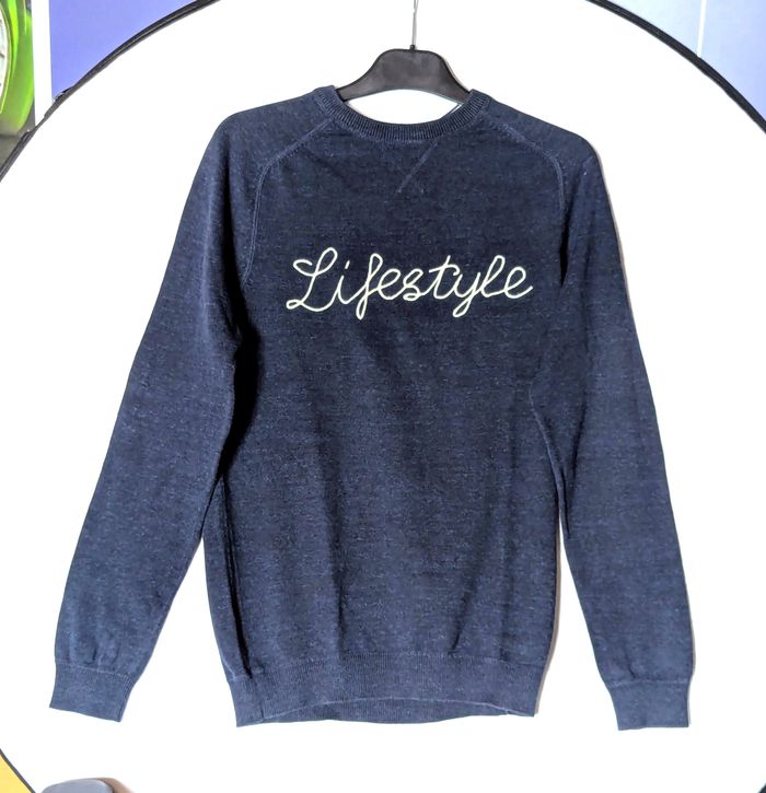 Pull "Jules" Bleu Très Foncé avec une Ecriture "Lifestyle" Devant. Vêtement Tendance à la Mode pour les Adolescents. ☑ Pull "Jules". ☑ Ecriture "Lifestyle". ☑ Tendance - Mode. Spécifications: Matière: 100% Coton Taille du Pull: S Couleur Dominante: Bleu (Foncé) Réf: vea154