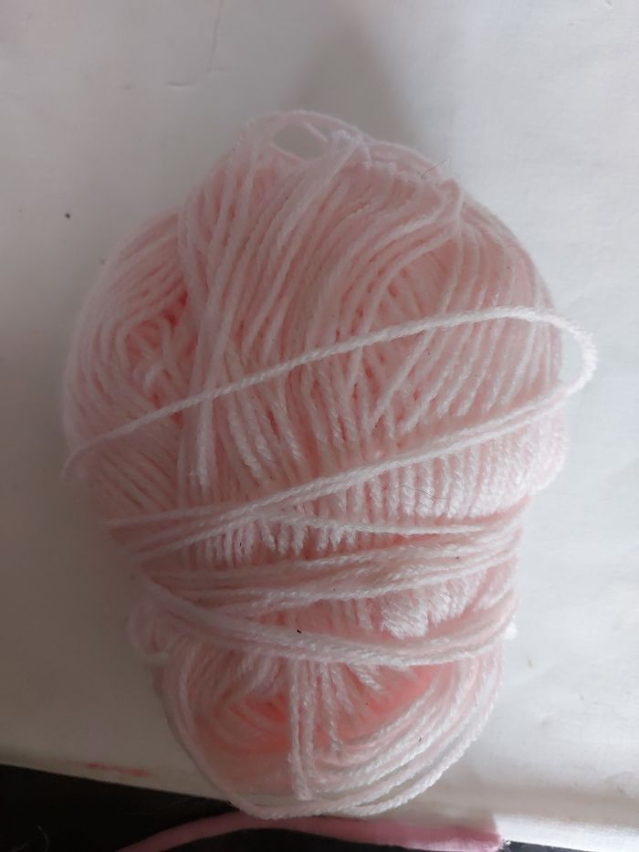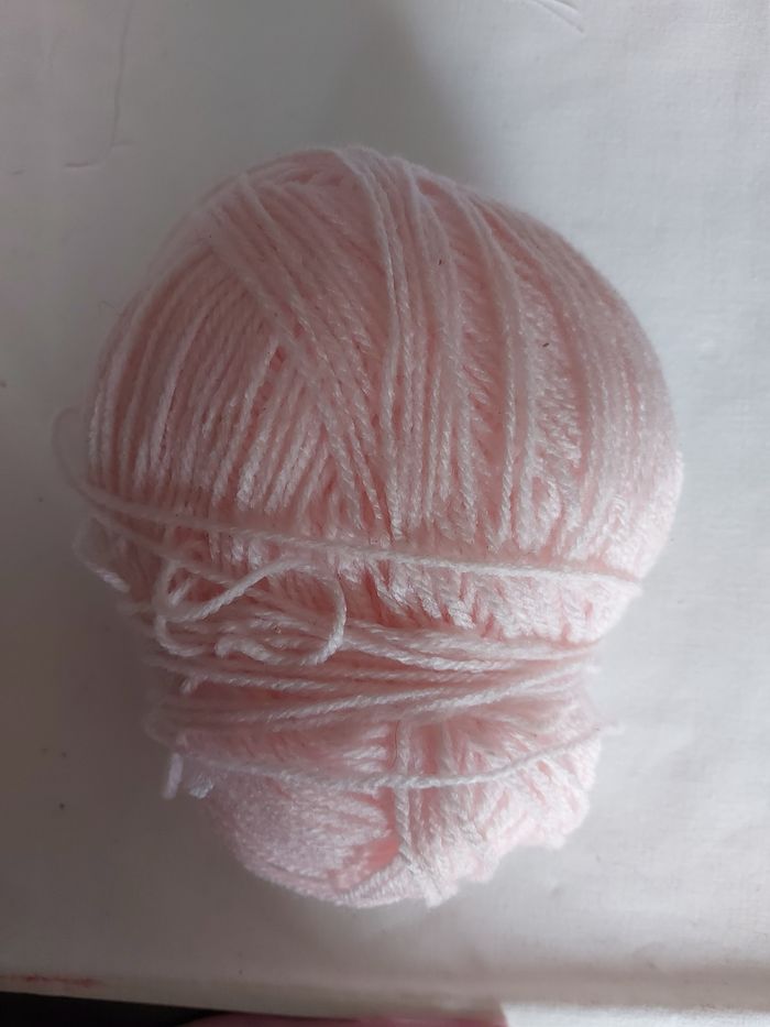 Pelote de fil à tricoter, entamée, rose TB état