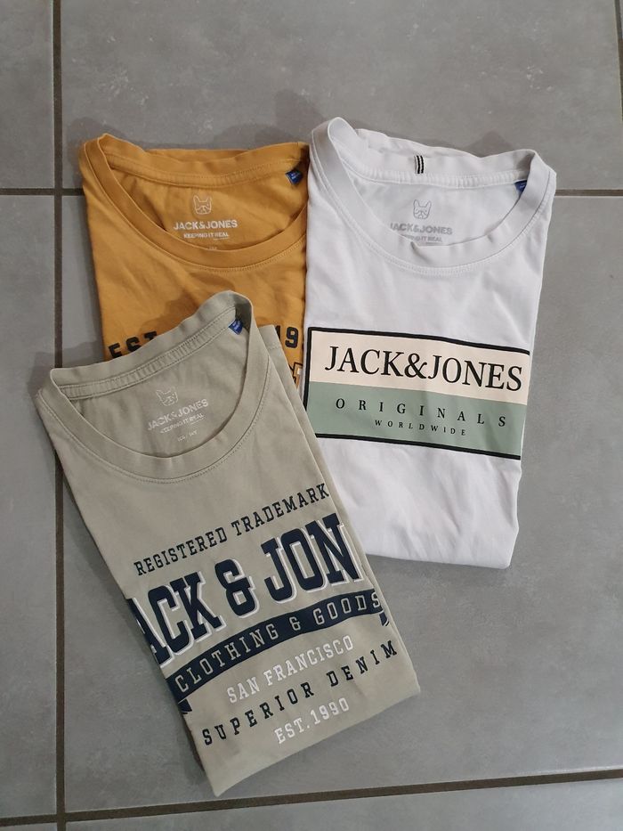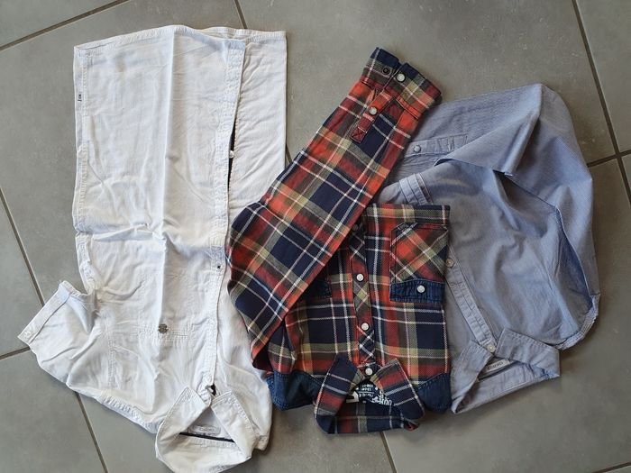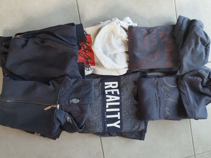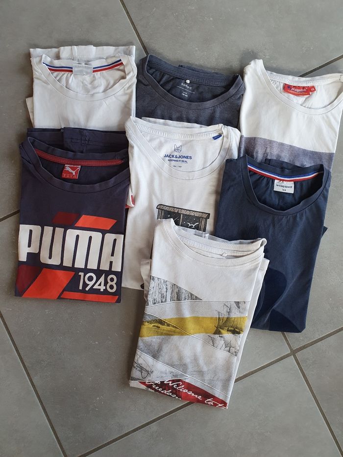 Gros lot de vêtements garçon en 14 ans en excellent état de différentes marques dont Jack &Jones, puma, garcia, name it,okaidi...comprenant : 3 pulls 6 sweats/vestes 3 chemises 12 t-shirts 10 t-shirts manches longues 9 polos longues 6 polos manches courtes