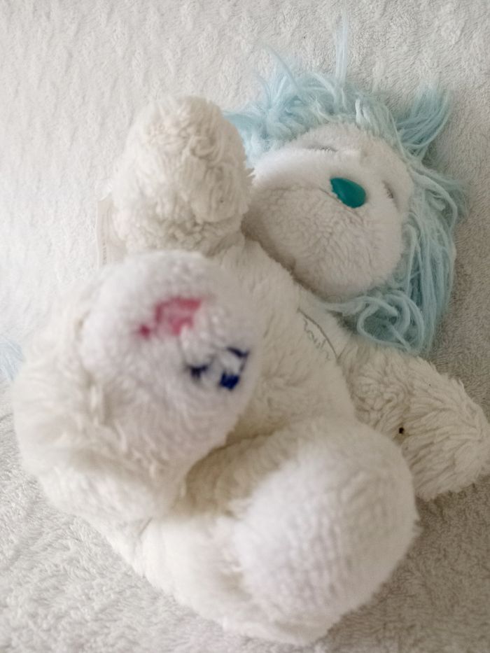 Peluche Lion Boulgom Vintage bleu blanc. Bon état mais la musique sur la pâte ne fonctionne pas. 22 cm 📮 Envoi rapide et soigné