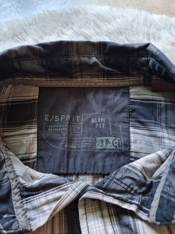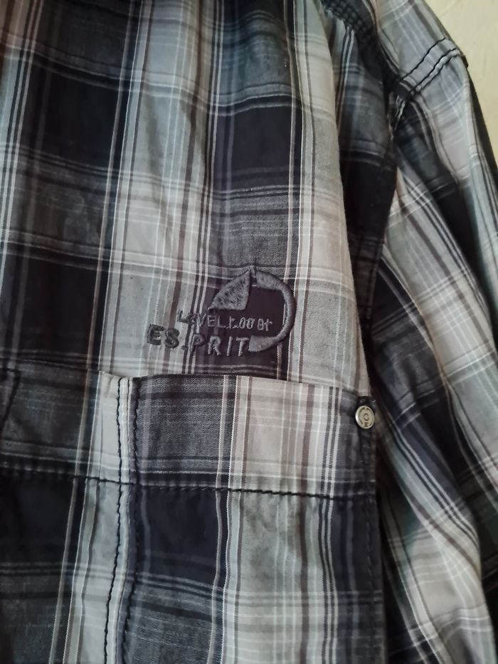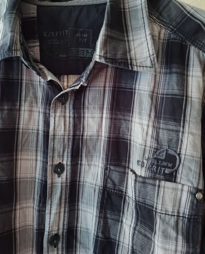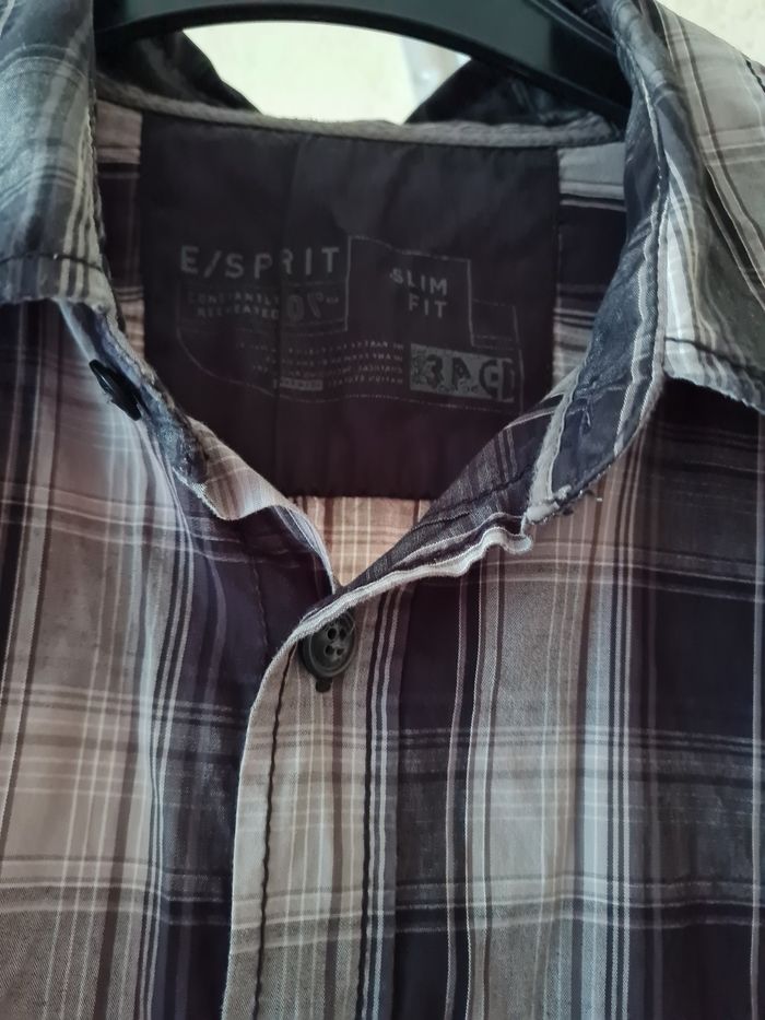 ESPRIT chemise carreaux tons gris/beige 1 poche poitrine longueur 69/73cm épaules 49cm aisselles 57cm #lesplacardsenfoliehomme #lesplacardsenfolietailleM ref17