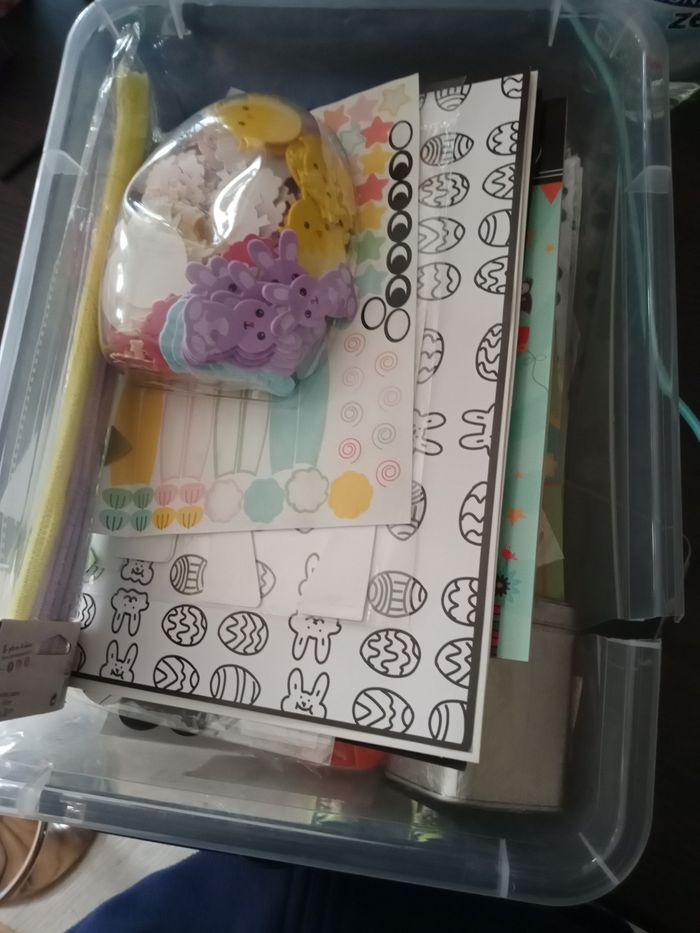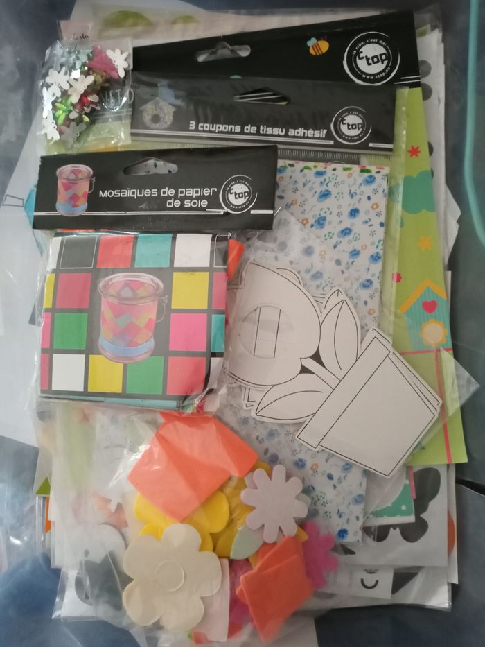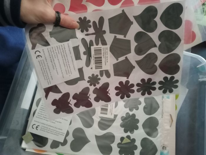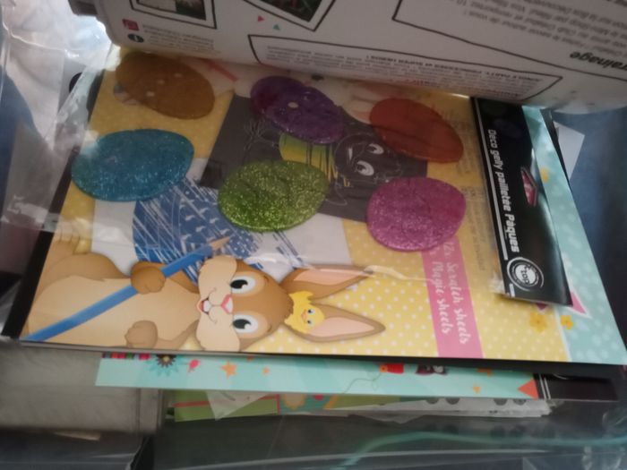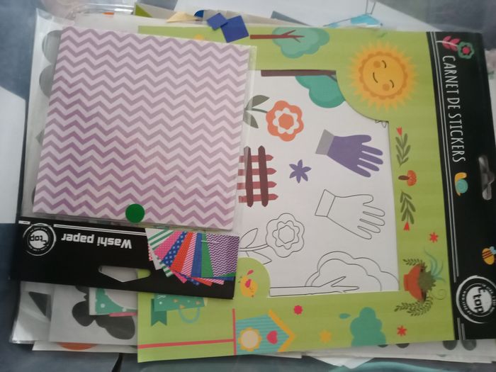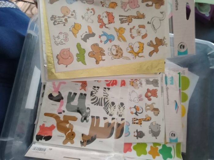 Gommette en tout genre toute taille toute matière toute forme toute couleur, carnet de stickers, gommettes à gratter, morceau de tissu, spécial Pâque.... Certaines choses sont neuves d'autres pas. N'hésitez pas à faire des lots dans mon dressing.