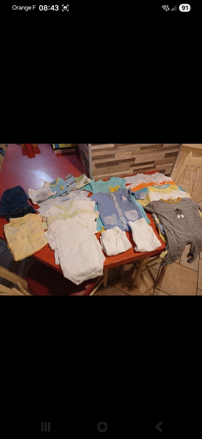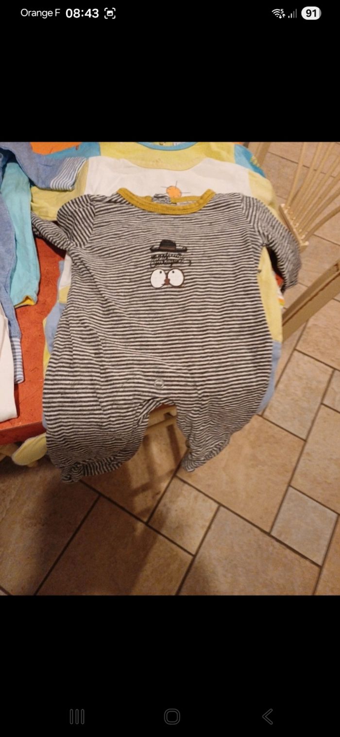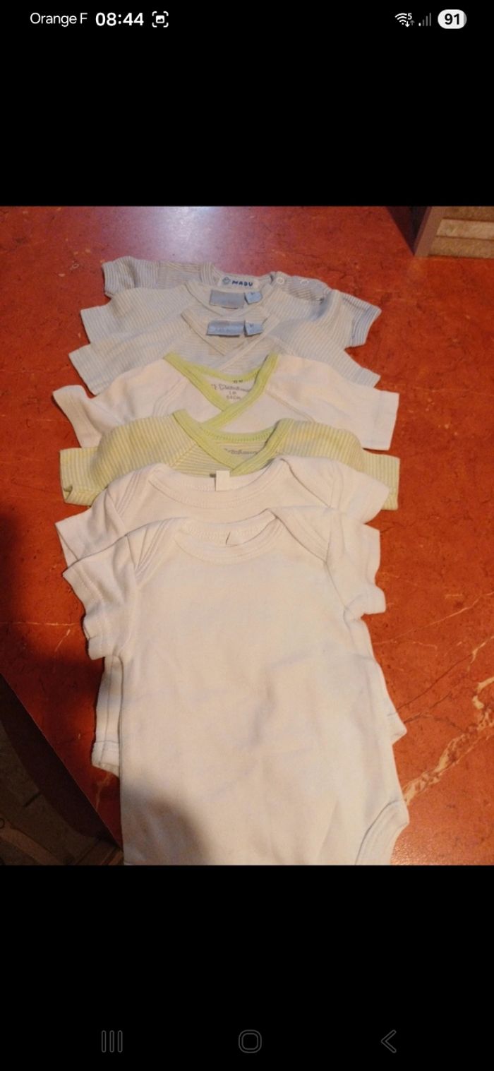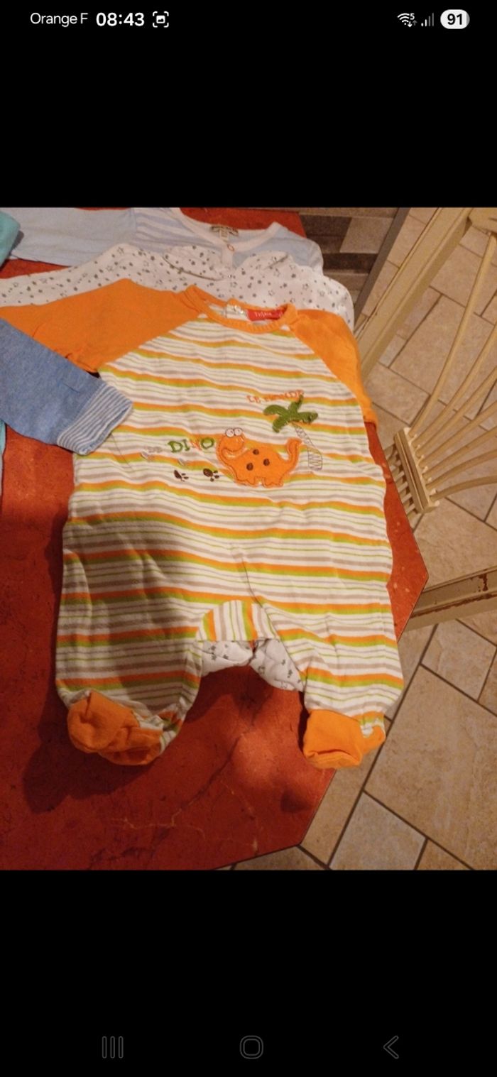 Lot de vêtements comprenant 7 bodies manches courtes 2 pyjamas fins sans pieds 6 pyjamas fins avec pieds 4 T.shirts manches courtes 1 petit pantalon 1 short 1 salopette courte 2 combinaisons d été Vous pouvez retrouver tous ces articles à l unité dans mon dressing