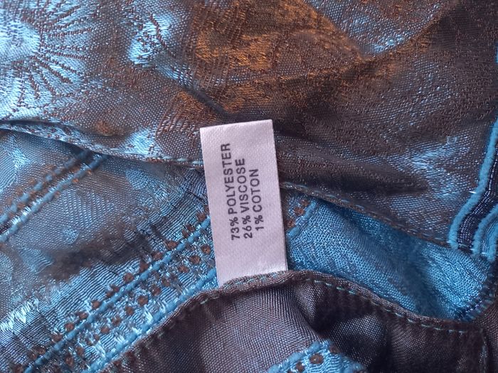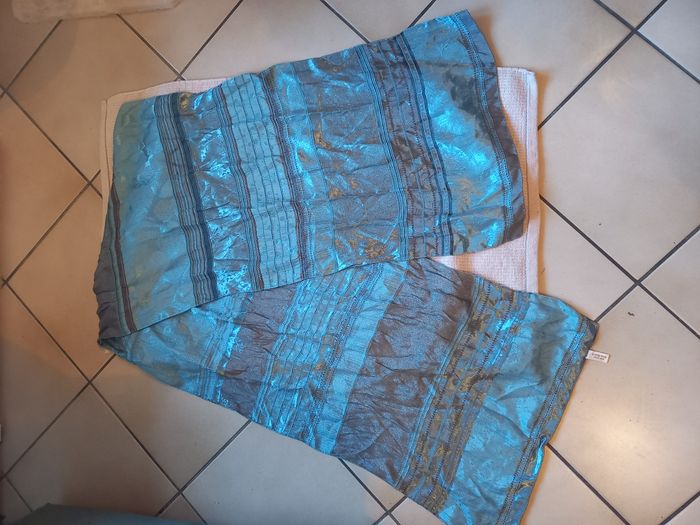 ✨Très belle étole aux reflets turquoise / bleu irisé, avec de fines rayures tissées et un effet légèrement satiné qui capte joliment la lumière. Un accessoire chic et raffiné, idéal pour habiller une tenue de jour comme de soirée 💎 🧣 Détails : Fabrication italienne 🇮🇹 Tissu léger et fluide, agréable à porter Motifs discrets et élégants Dimensions : 178 x 43 cm (format allongé, parfait autour du cou ou sur les épaules) État : très bon état (voir photos) ✨ Parfaite pour les beaux jours, les soirées, cérémonies ou pour ajouter une touche sophistiquée à une tenue simple. 📦 Envoi rapide et soigné.