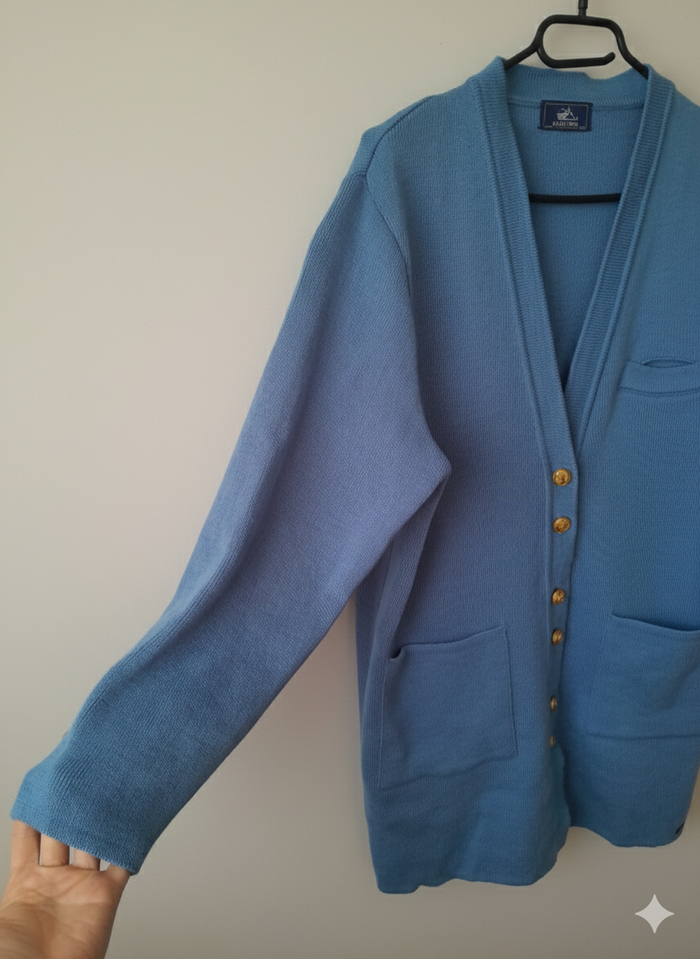 Cardigan gilet Saint James bleu ciel 100 % laine 2 poches sur le devant En très bon état Les photos semblent montrer des nuances de couleur à cause de la luminosité mais le cardigan est bien de couleur bleu unie 😊 Taille 40 Largeur épaules 40 cm Largeur sous aisselles 52 cm Longueur 80 cm #frippom_taille40 #saintjames #cardigan #madeinfrance