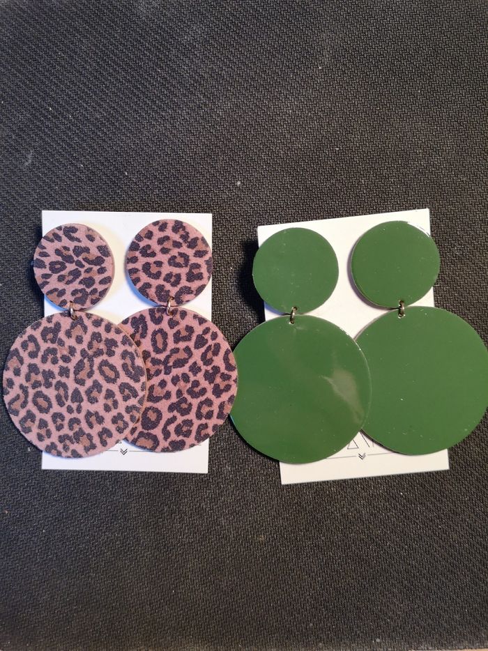 Boucles d'oreilles en cuir twiggy Coloris leopard Coloris vert laqué Sur puces