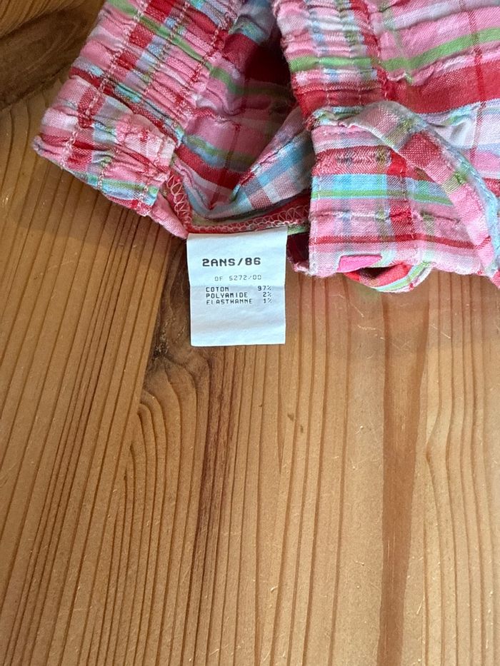 Short fille 2 ans très bon état imprimé carreaux rose rouge bleu vert blanc