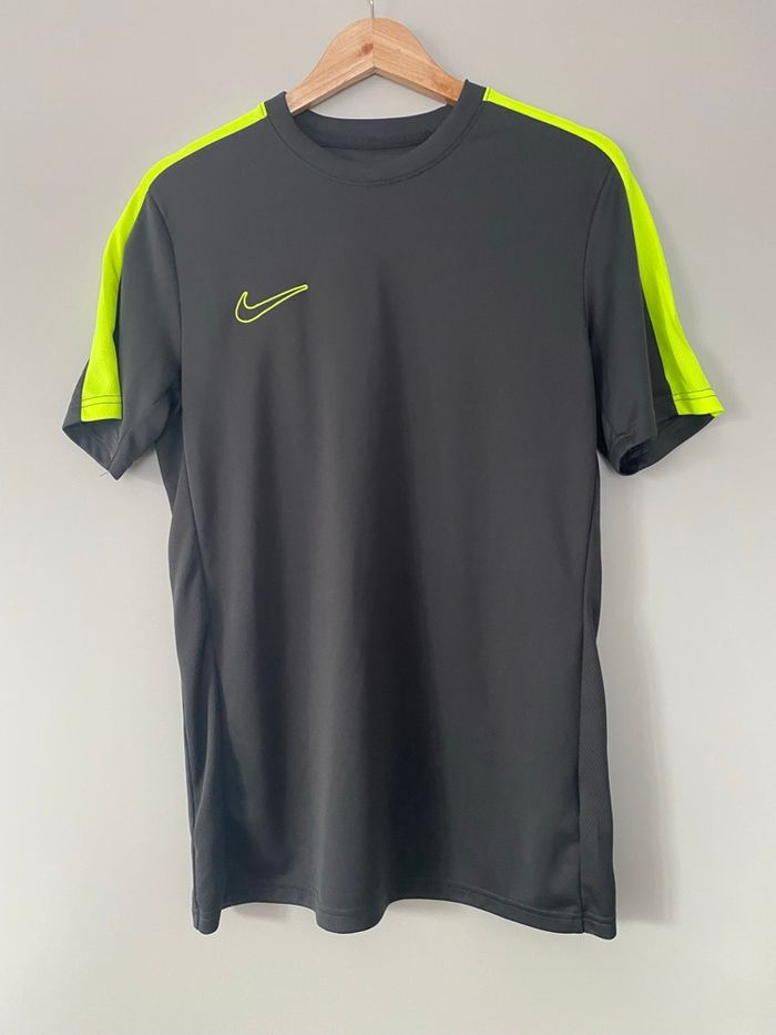 Je vends ce t-shirt Nike gris anthracite avec des détails fluo. - Type de produit : T-shirt - Marque : Nike - Taille : M - Couleur : Gris anthracite - Caractéristiques : Détails fluo sur les manches, Nike brodé - Lavé 🧼 et repassé N'hésitez pas à me contacter pour plus d'informations ou de photos.