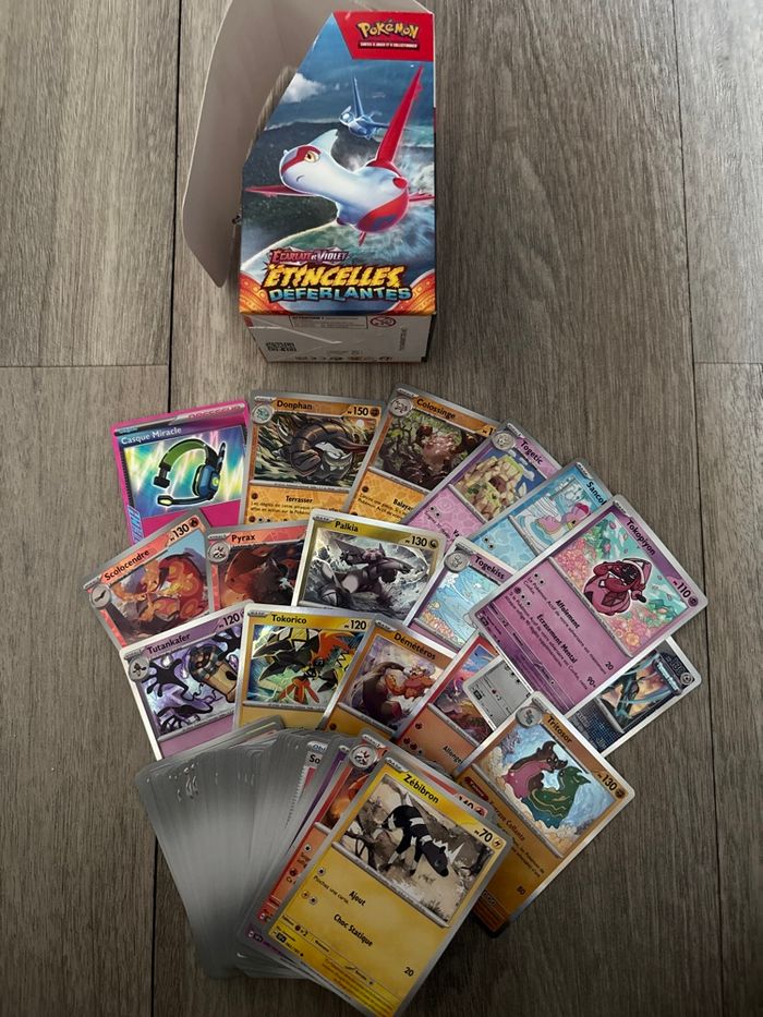 Bonjour, Reste d’une ouverture Étincelles déferlantes 1 Kit, une quinzaine d’holographique et reverse Pour un total de 106 cartes D’autres choses proposées dans mon dressing