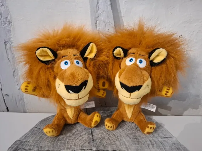 Lot de 2 peluches Alex du film d'animation Dreamworks Madagascar 2010 Dimensions : 24 cm de hauteur Fabricant : Big Heads