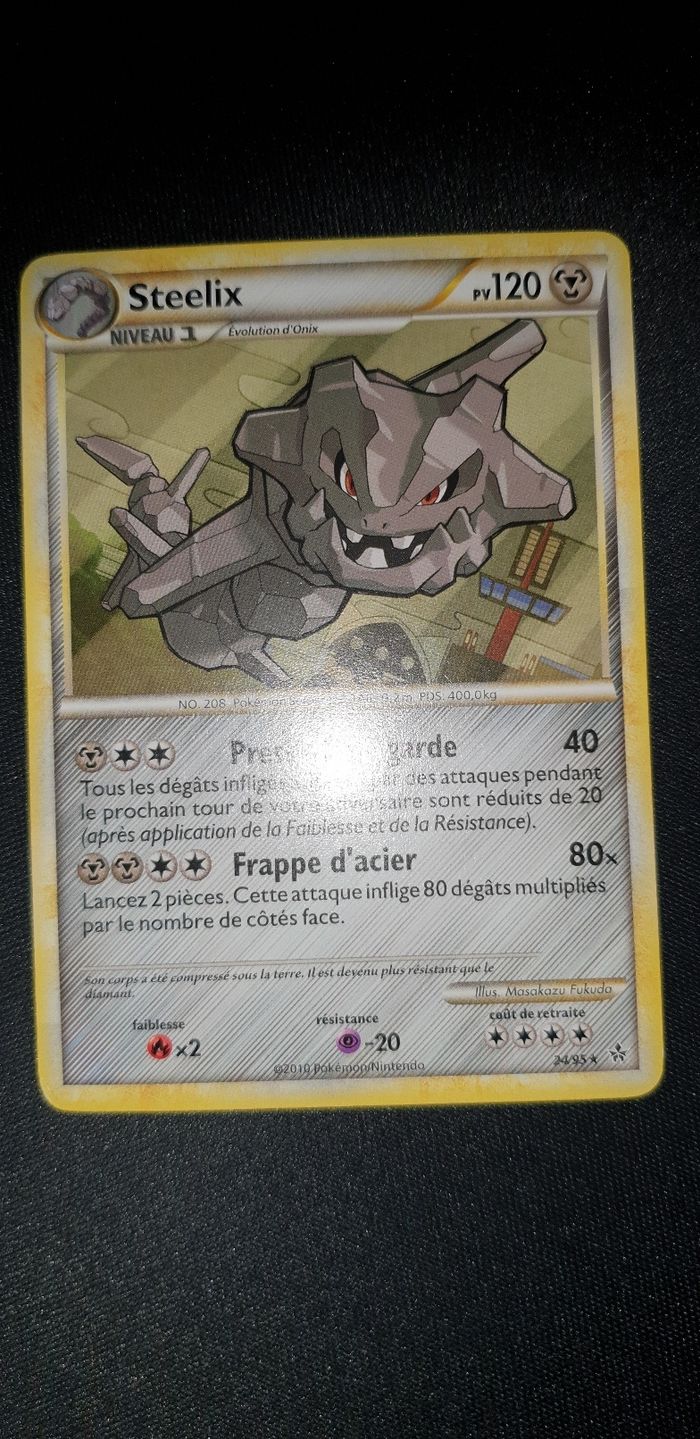 Carte pokémon Steelix 24/95 HGSS Déchaînement Etat : Excellent ++ (1 angle légèrement abîmé) Sous sleeve