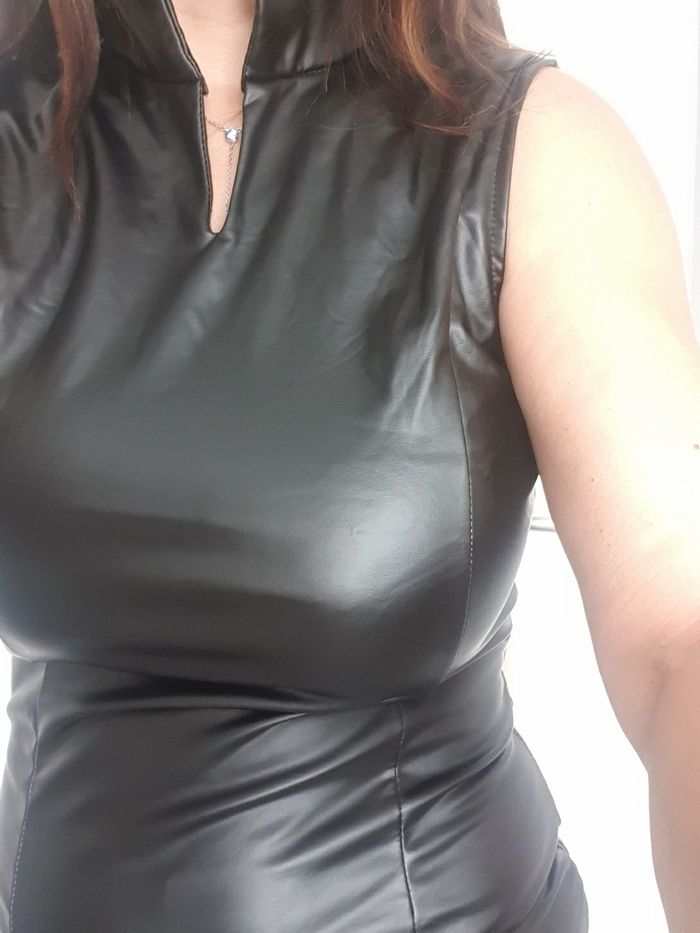 Robe simili cuir moulante (trop serrer pour moi) toute neuve jamais portée voir mesures et composition sur photos